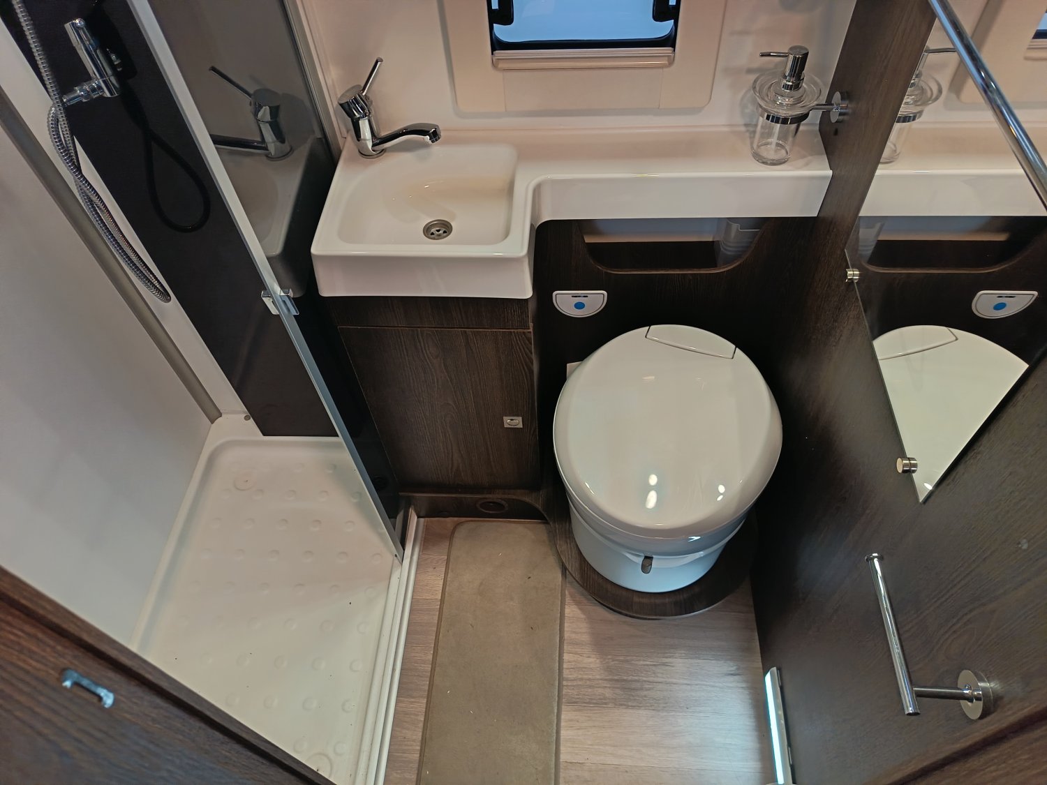 Très belle occasion compacte de seulement 5m99. Implantation astucieuse et très appréciée offrant un salon de très grande taille, un lit de pavillon électrique et une cuisine avec un grand plan de travail et de nombreux rangement. La salle de bain dispose d'un cabine de douche indépendante.