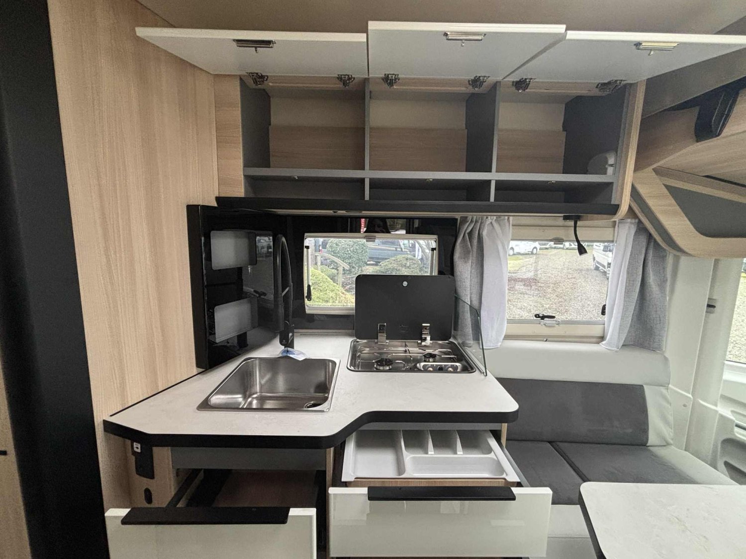 Voyagez comme à la maison avec le I740 LC : grand lit central XXL, salon face à face, cuisine équipée et espace optimisé pour un confort absolu.