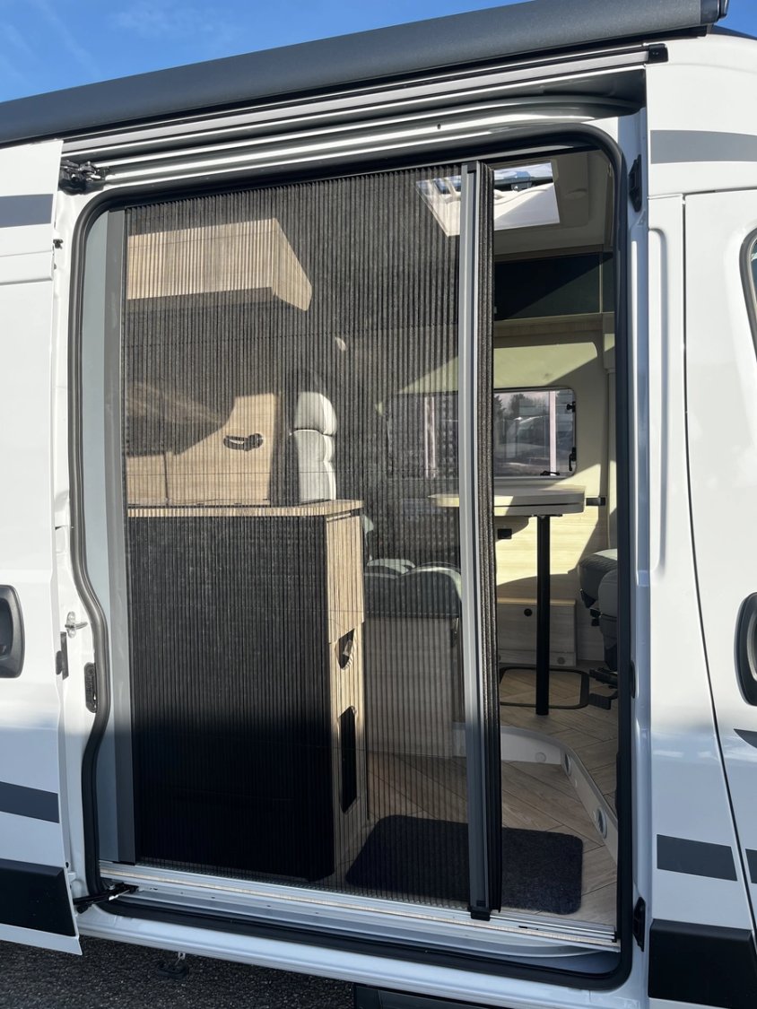 Store extérieur - auvent, panneau solaire 200W, éclairage extérieur porte d'entrée, moustiquaire de porte, store intérieur cabine,