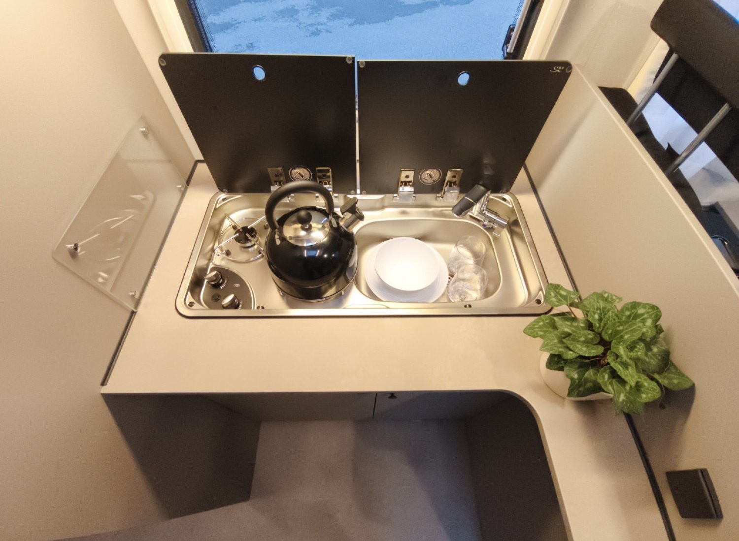 Porte moustiquaire, Toit panoramique de cabine avec store occultant et moustiquaire, Système ISOFIX pour 2 sièges, Store extérieur coloris noir mat avec bande LED, Stores plissés de cabine, Tableau d'affichage avec 2 élastiques, 2 coussins Relax