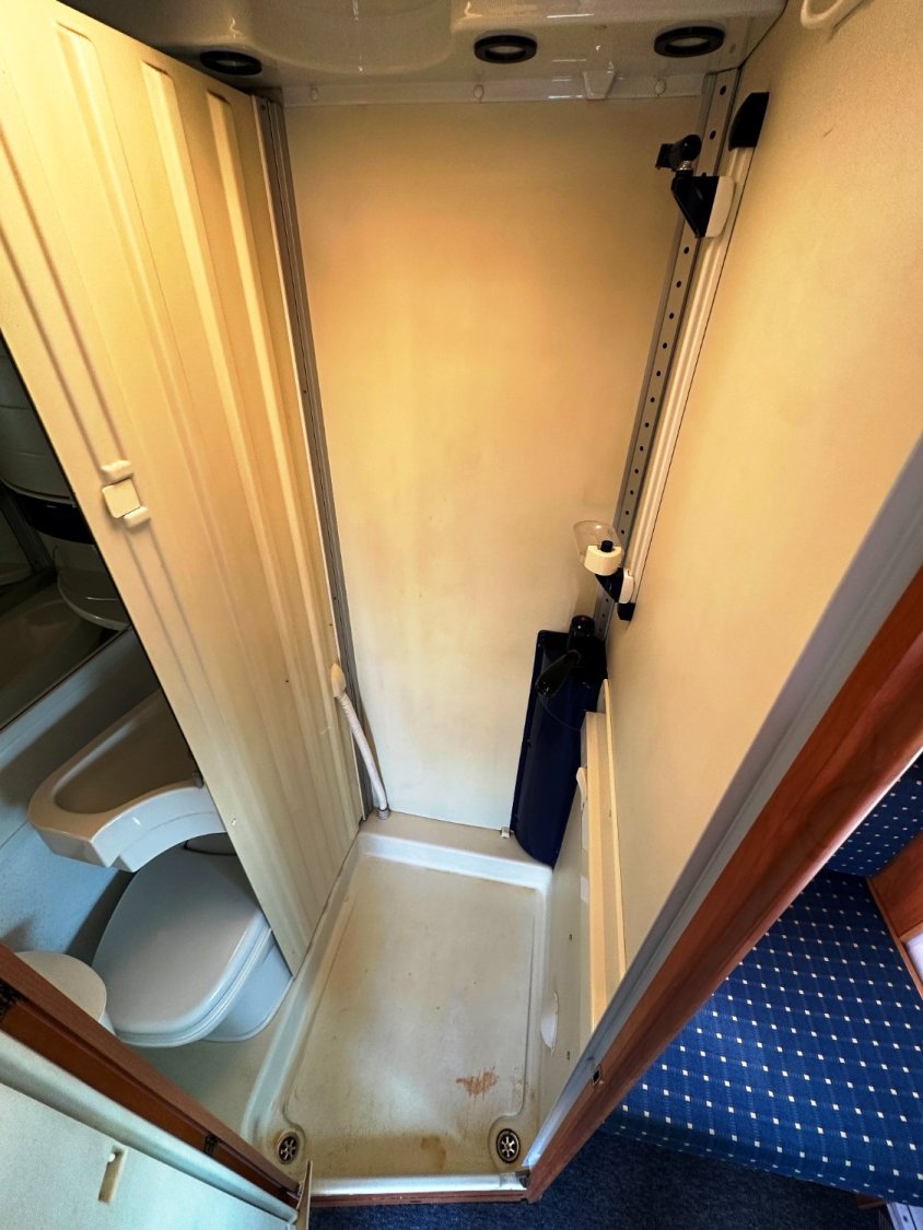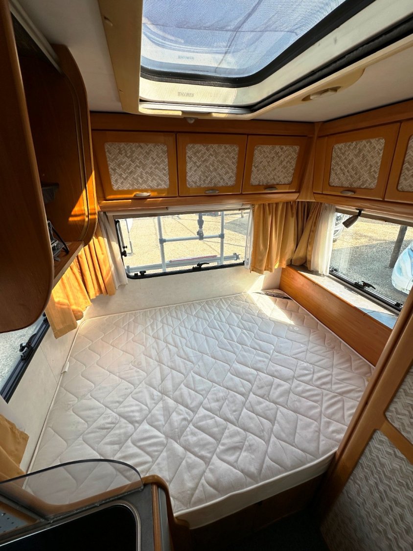 Profilé Eriba, 3 couchages, lit transversal, salle de bain « vario » convertible en douche, cuisine spacieuse et toute équipée, salon avant avec sièges pivotant et table centrale convertible en un couchage d’appoint.