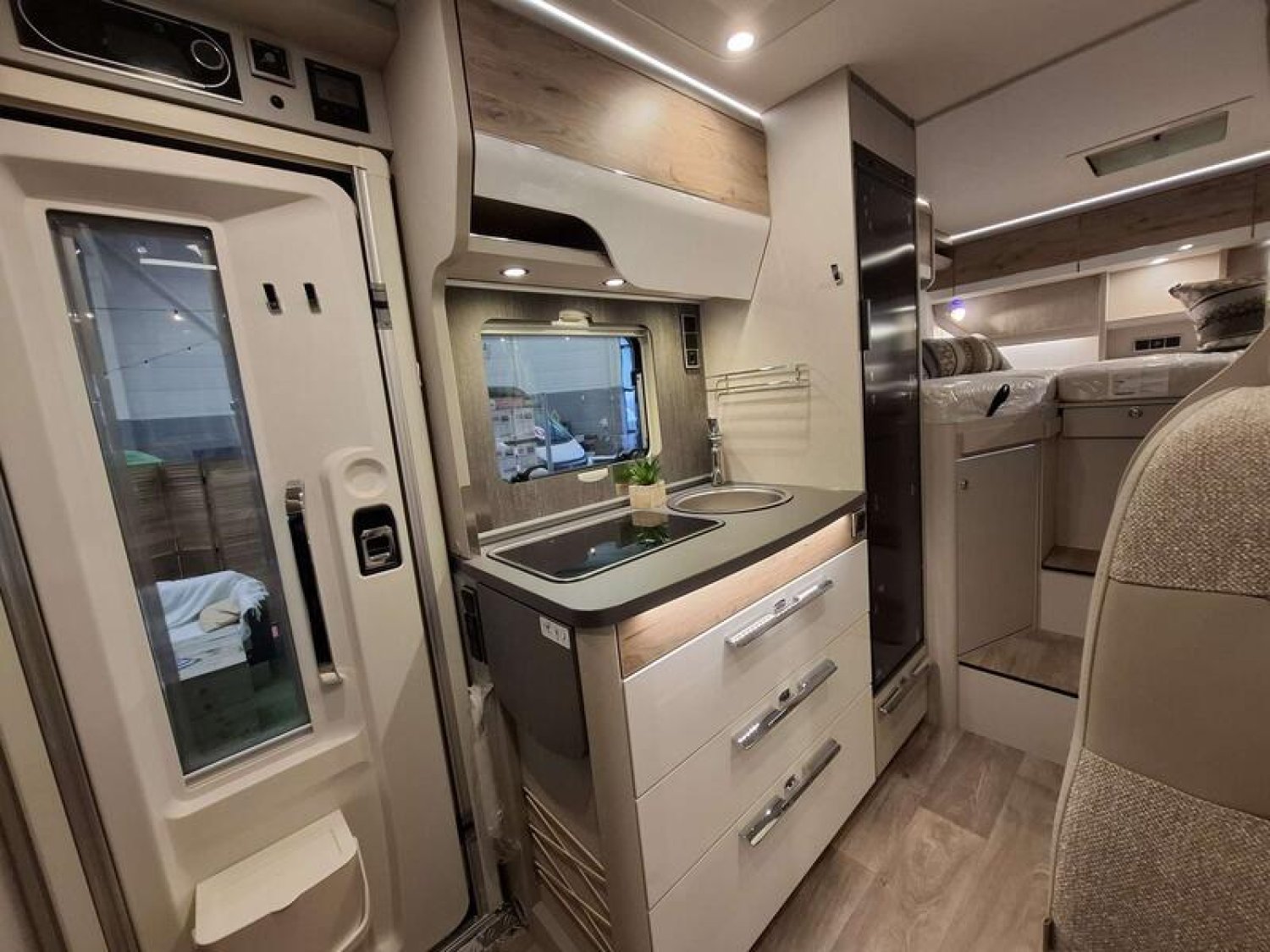 OPTIONS CONSTRUCTEUR PACK CONFORT DE CONDUITE Climatisation automatique avec filtre à pollen Rangement pour smartphones avec fonction de recharge sans fil et indicateur du niveau de charge Cockpit intégralement digital avec écran 7" intégré Système multimédia avec écran tactile de 9", y compris logiciel pour camping-car, DAB+, Apple Car Play, Google Android Auto, caméra de recul et de service, fonction rétroviseur, "Smart Contr + PACK CONFORT CELLULE Éclairage d'ambiance Draps-housses sur mesure pour lits arrière adaptés aux contours du matelas Coussins avec housses (4 pièces) Caillebotis de douche avec surface en bois Prises supplémentaires : 5 x 230 V / 3 x 12 V / 2 x double-USB (y compris crédence cuisine) : 5775 €