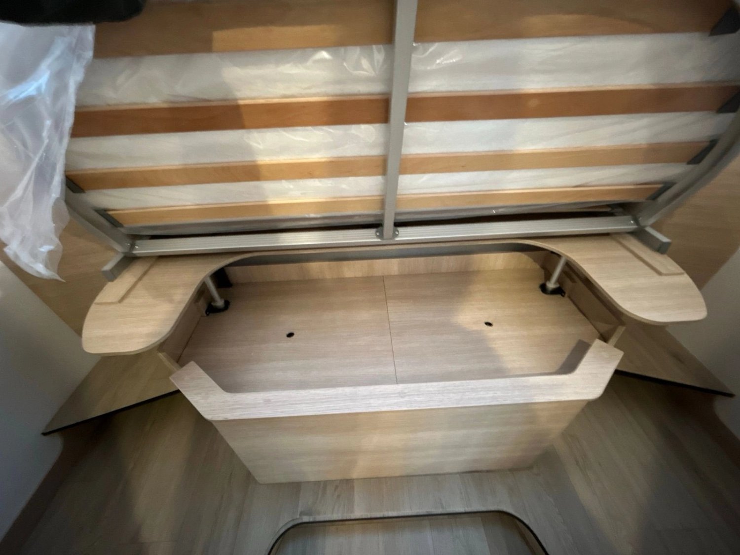 Lit permanent réglable en hauteur (≈20 cm) assisté par vérins électriques (900€)