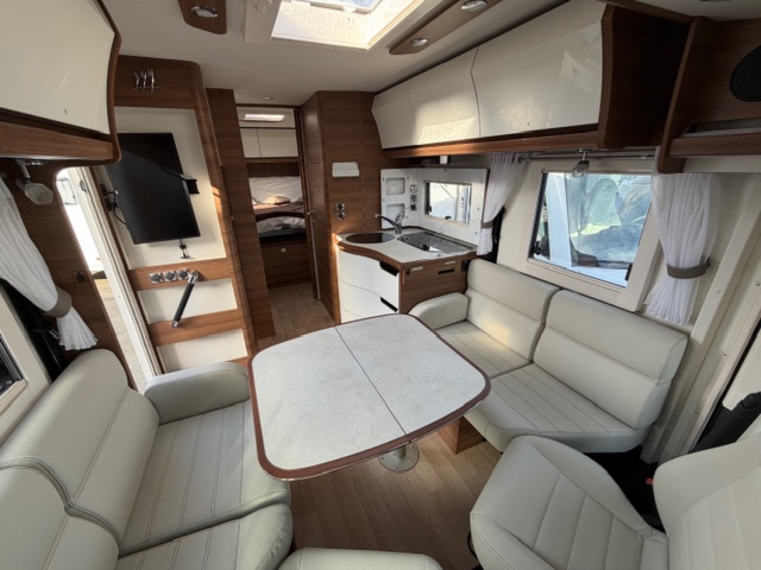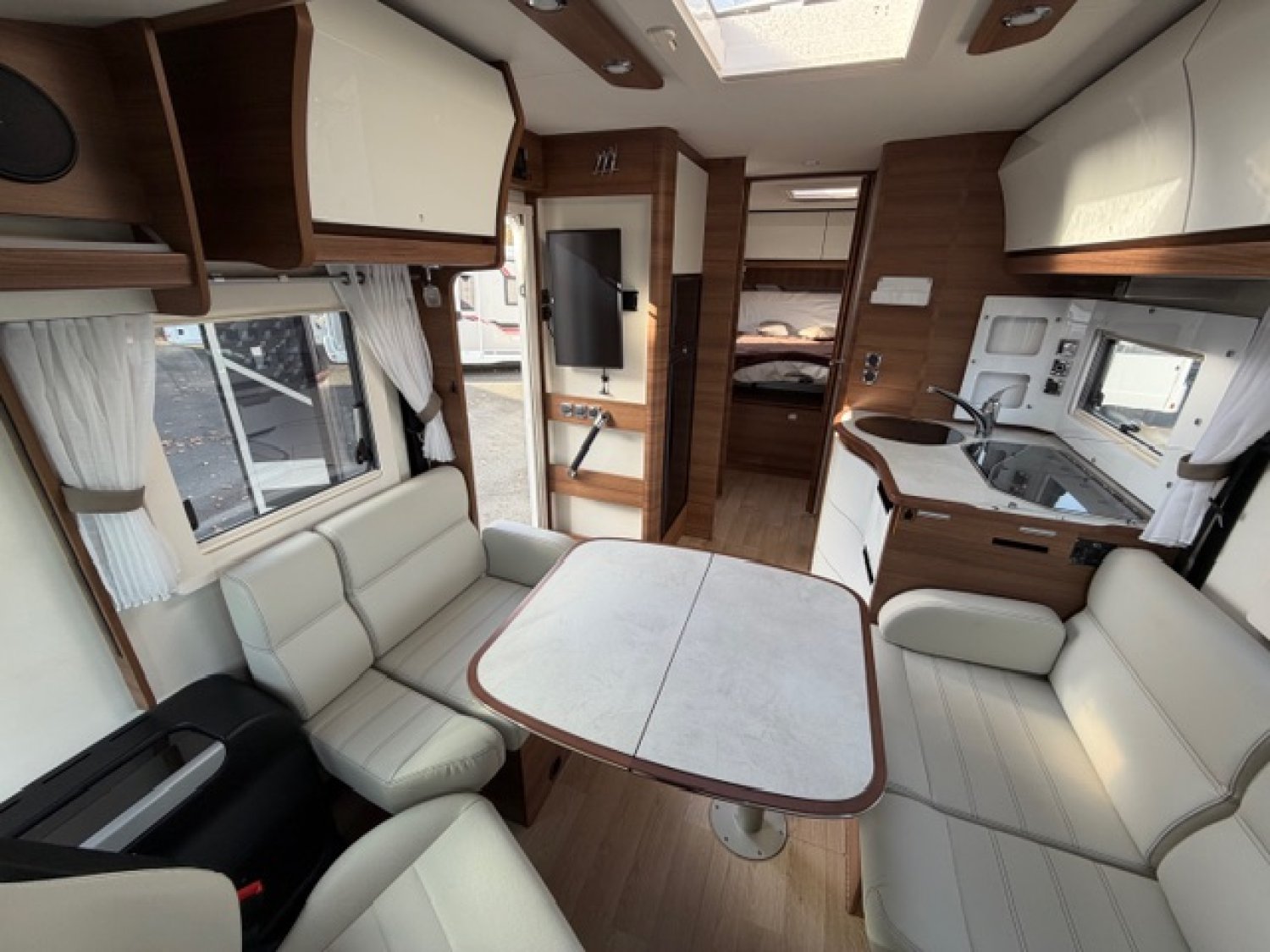 Boite automatique 9 G Tronic, Jantes alliage, Store extérieur, Convertisseur 2 000W, Pack M, Grand frigo congélateur, Volant multifonction, Antenne sat auto, Isolant extérieur sur mesure Clairval, 2 batteries AGM, Kit lino, Rétroviseur double optique, 2 télévisions, Station multimédia /caméra de recul, Frein à main électrique, Soute réglable en hauteur, Moustiquaire de porte cellule, Batterie Lithium 160 AMP, Detecteur de pluie, Alerte pression Pneumatique, Chassis alko, Hotte aspirante, Marche pied conducteur et cellule électrique, Porte vélo de soute, Occultant pare brise