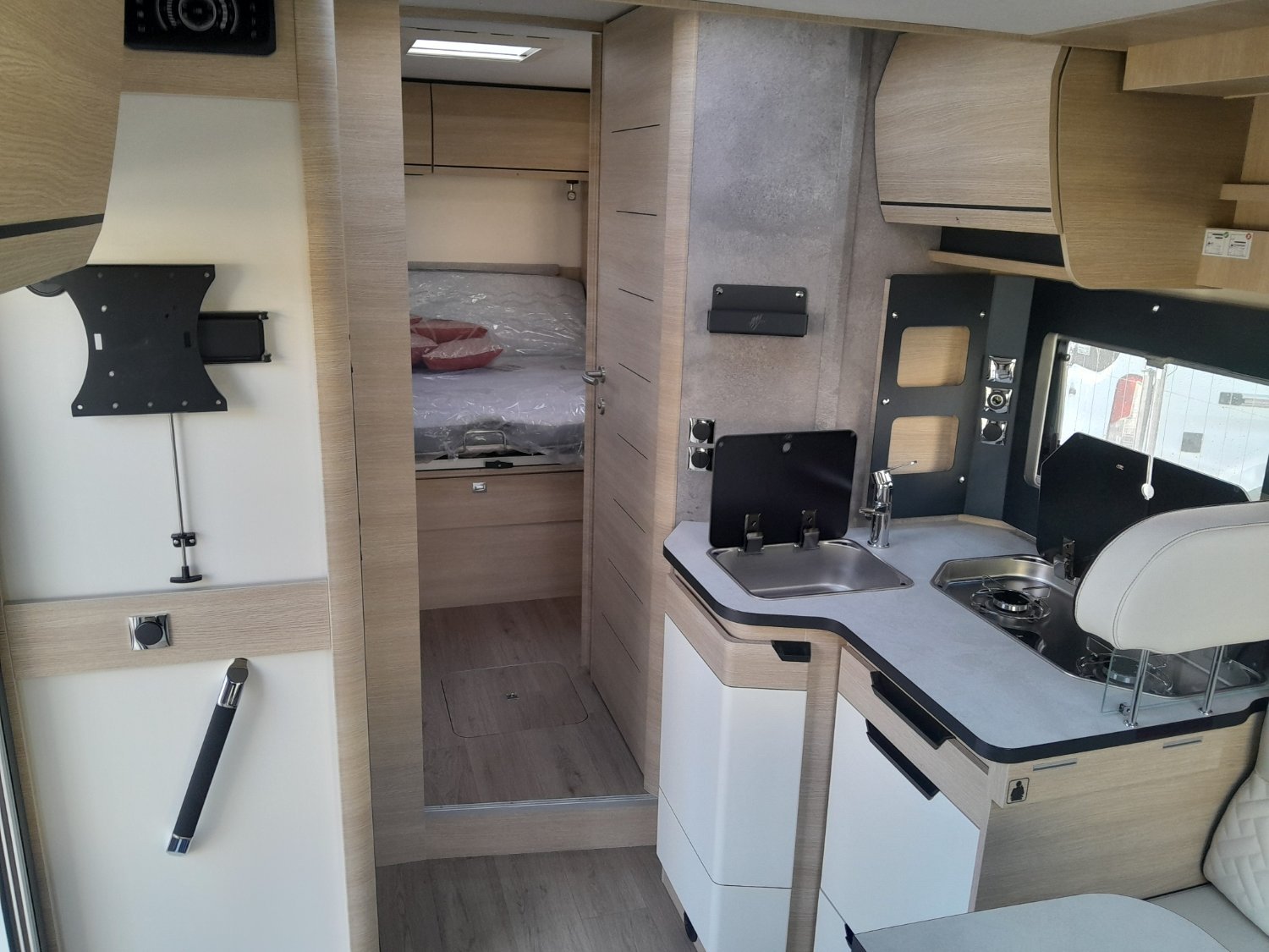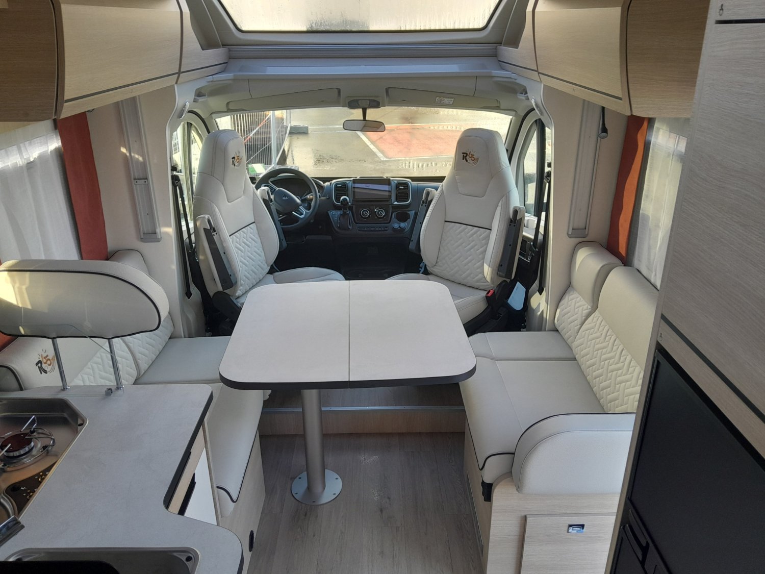 Panneau solaire 150W, caméra de recul, autoradio Double DIN 9", support TV, sun roof, hotte, frigo XXL 156L, chauffage Truma 6EH (gaz et électrique), grande soute avec lit réglable, commandes au volant, volant et pommeau cuir, douchette extérieure, LED extérieure, batterie Lithium, tiroirs à fermeture amorti, caillebotis et paroi de douche, WC séparé, boîte automatique, lit pavillon double, pneus 4 saisons, moustiquaires et occultants, aide à la conduite.