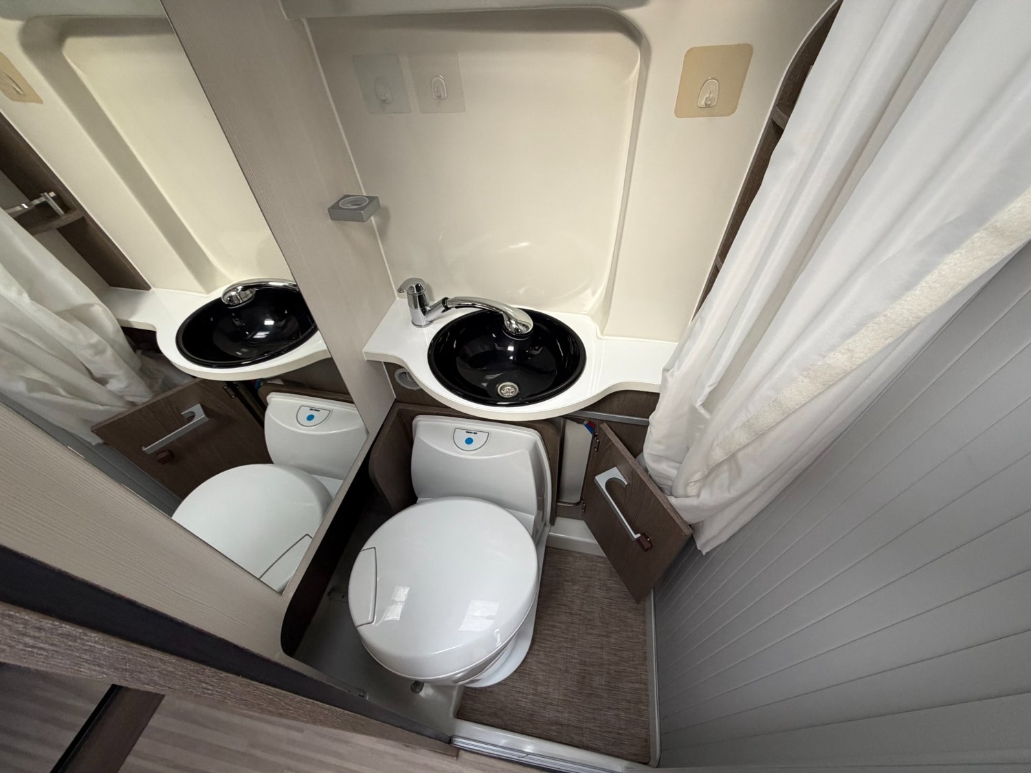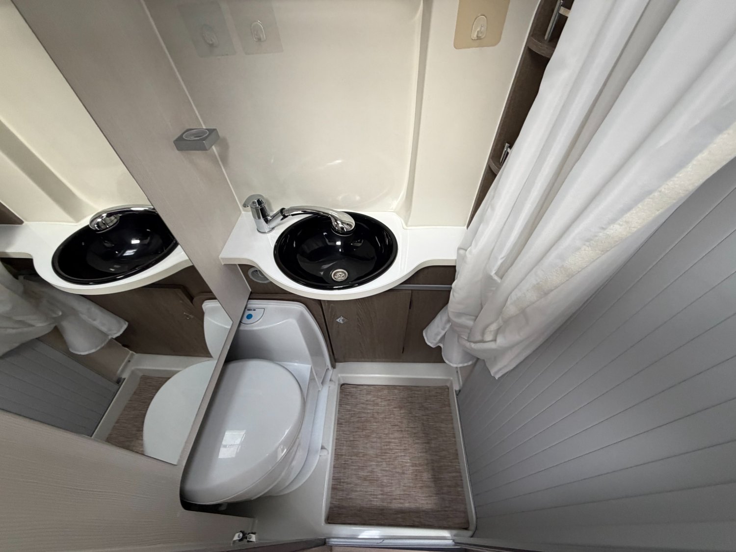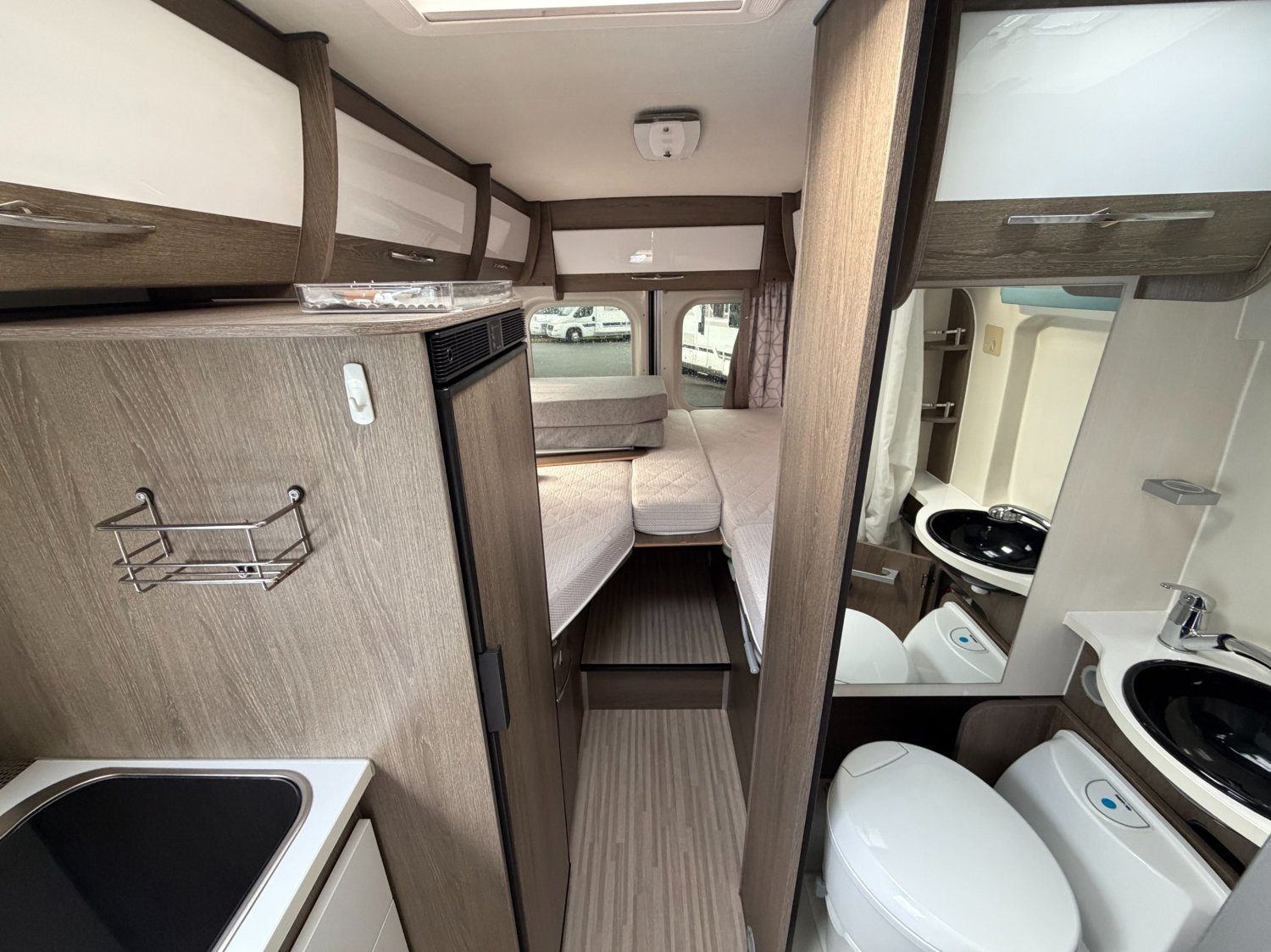 accès facile pour le couchage en version lits jumeaux, beaucoup de rangements, grand réfrigérateur.