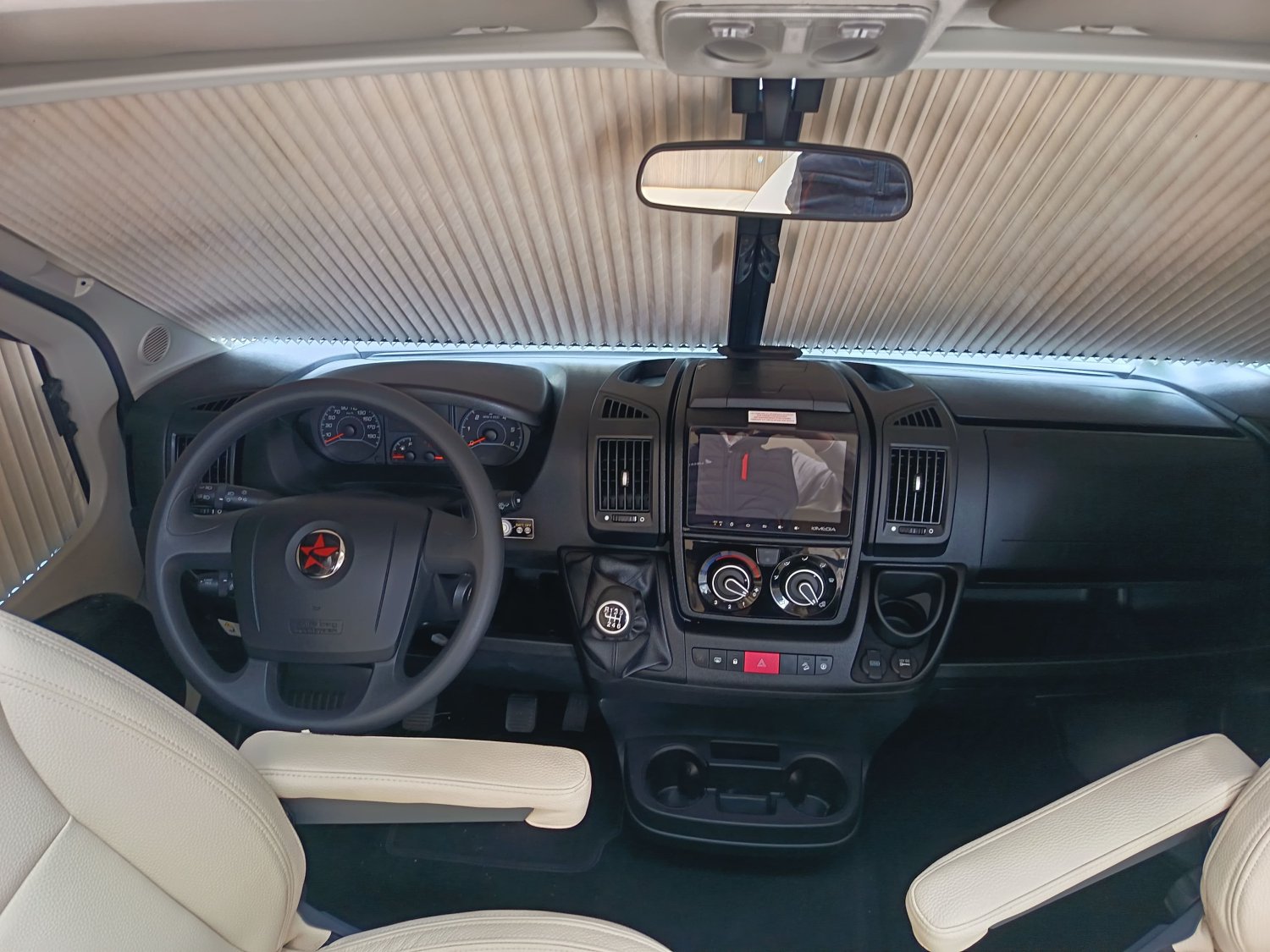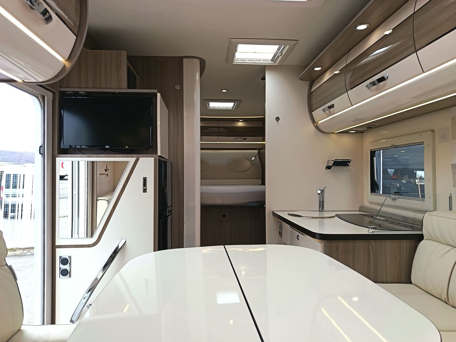 STORES REMIS, LIT CENTRAL REGLABLE EN HAUTEUR, STORE EXTERIEUR, DOUCHETTE EXTERIEURE, ATTELAGE, STATION MULTIMEDIA ET CAMERA DE RECUL, TV + ANTENNE SATELLITE AUTO, BANQUETTE FACE FACE