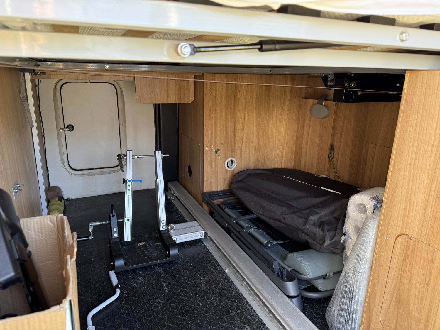 Ce Chausson Flash 49 EB de 2013 est un profilé pensé pour voyager confortablement, avec un vrai lit central réglable en hauteur au-dessus d’une soute généreuse. Grâce au système Easy Bed, on choisit la hauteur du lit selon les besoins de rangement, ce qui permet d’embarquer du matériel ou des bagages sans sacrifier le confort à bord.