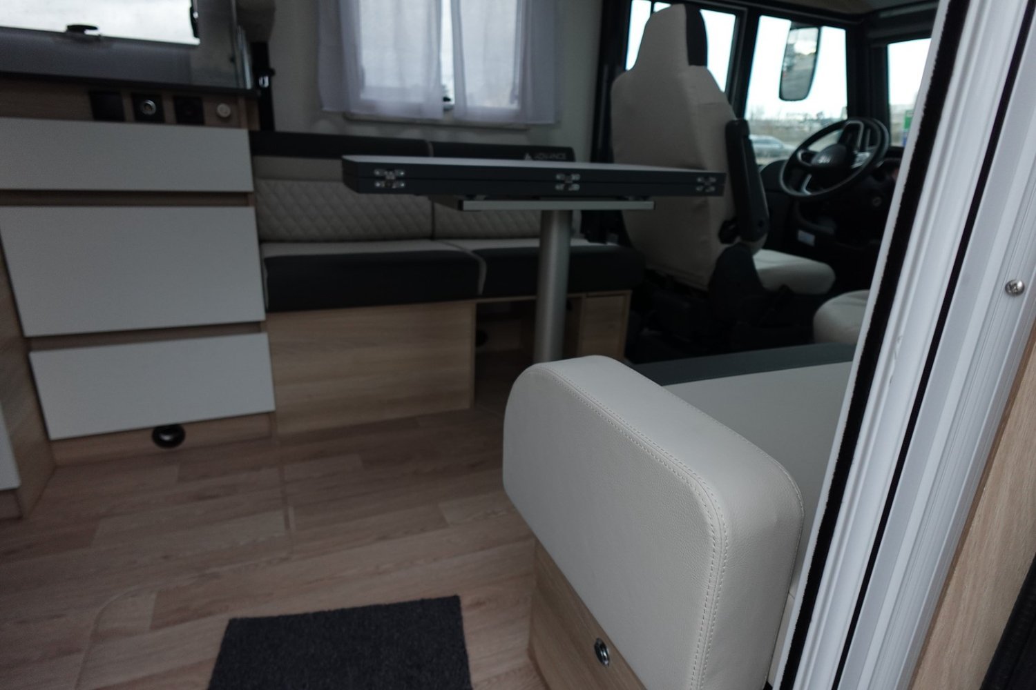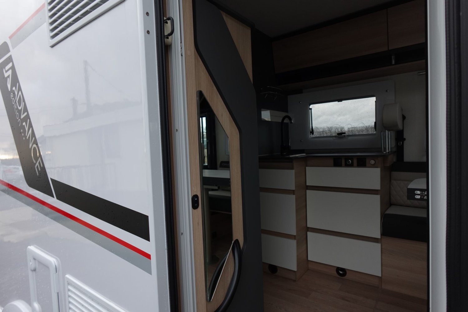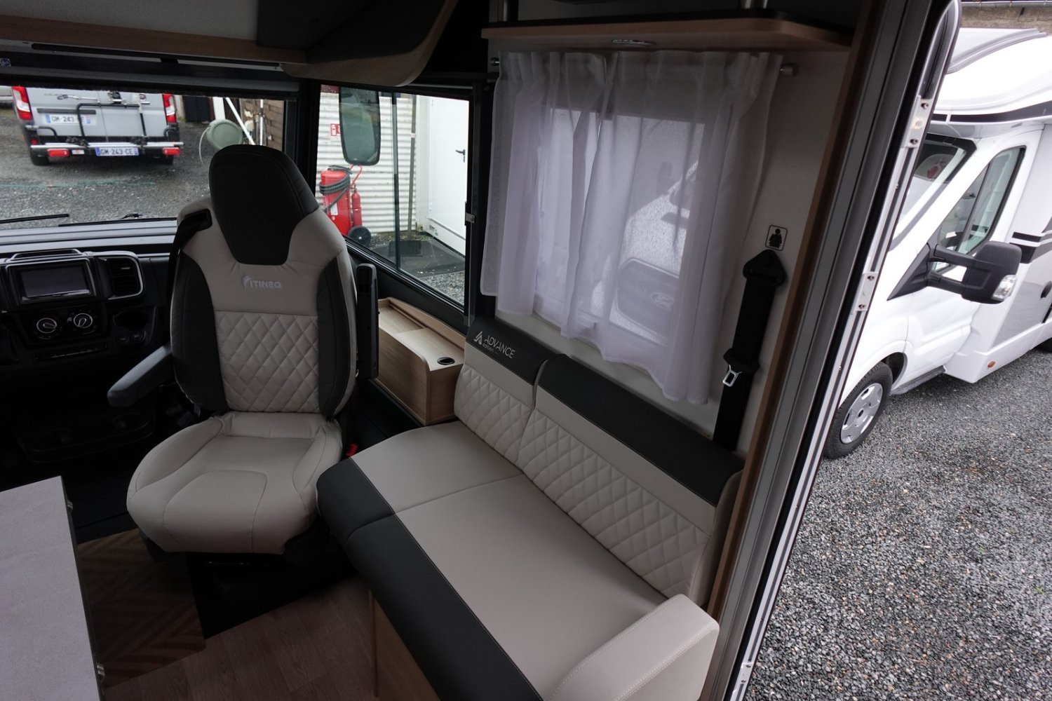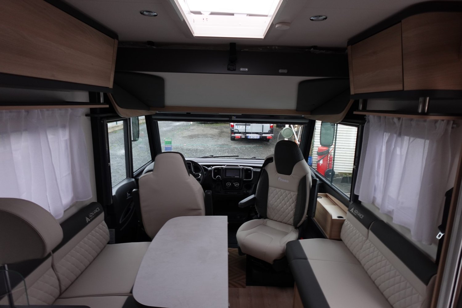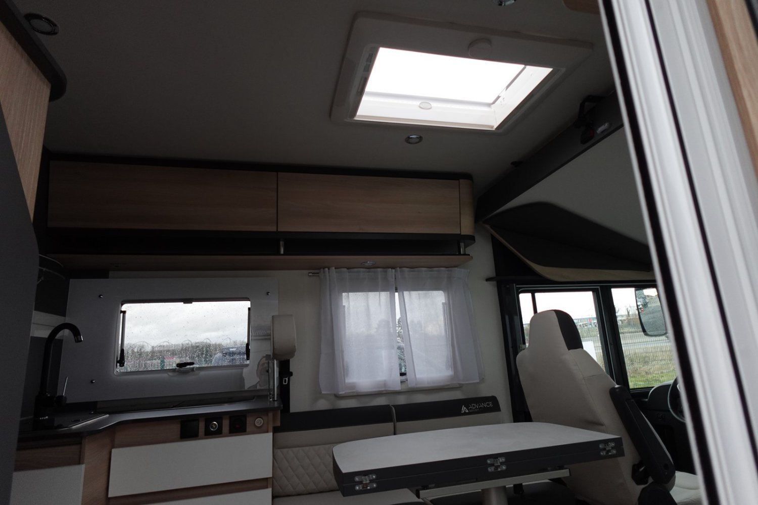 (Nouvelle decoration extérieure, Barres chromées sur grille bouclier, Jantes Fiat noires en alliage léger 16 pouces, Sellerie TEP unique avec broderie Advance Edition, Volant et Pommeau de levier de Vitesse en cuir, Autoradio Pioneer avec écran 6.8 pouces et fonctions Apple Car Play / Android Auto, Pare-chocs arrière noir, Enjoliveurs feux arrière en noir, Bac de rangement dans le plancher, Panneau solaire 150 W, Store d’occultation cabine, Mobilier salon avec compartiments de rangement rétroéclairés à LED)
