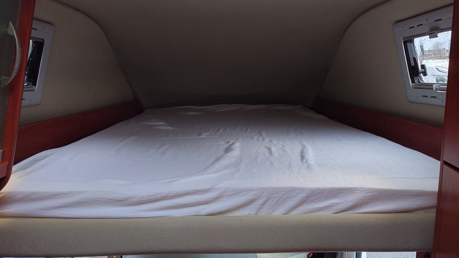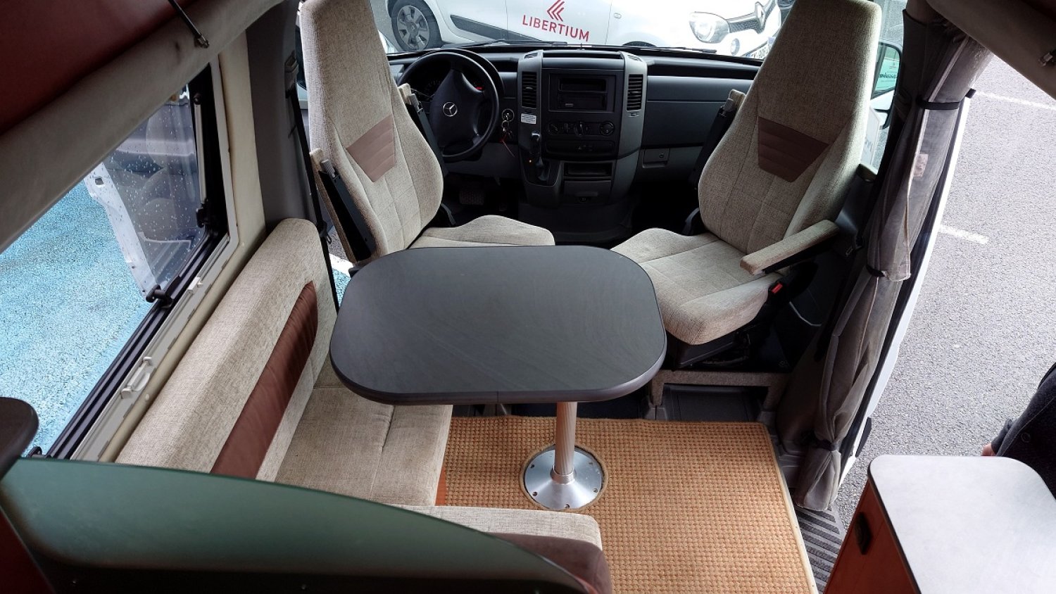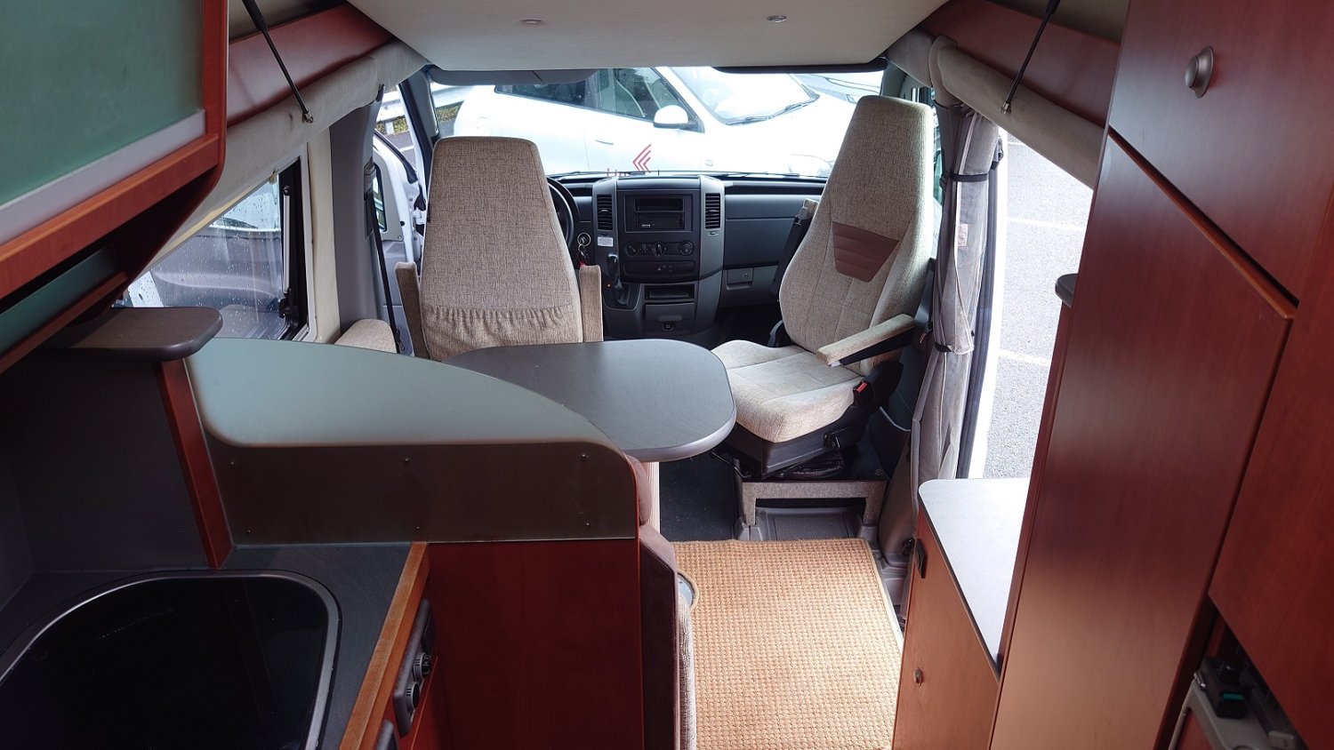 Occasion haut de gamme avec lit de pavillon, sur porteur Mercedes avec boite automatique, régulateur et limiteur de vitesse.