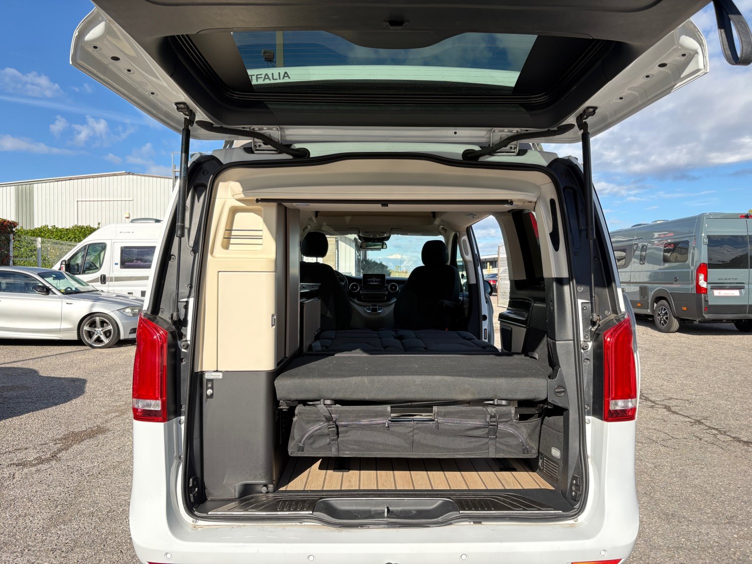 TABLE ET CHAISE WESTFALIA, FREIN A MAIN ELECTRIQUE, OCCULTANT SUR TOUTES LES VITRES, FEUX FULL LEDS, ATTELAGE, GAZINIERE 2 FEUX, GLACIERE A COMPRESSION WESTFALIA, JANTES ALU 18", RETROVISEUR ELECTRIQUEMENT RABATTABLE, SIEGE CHAUFFANTS, REGULATEUR DE VITESSE, VITRES LATERALES ELECTRIQUES, CHAUFFAGE GAZOIL, BANQUETTE ELECTRIQUE, CAMERA DE RECUL, RADAR DE RECUL + AV, ROUE DE SECOURS, VITRE OUVRANTE ARRIERE, BOITE AUTO 7G TRONIC 163CV