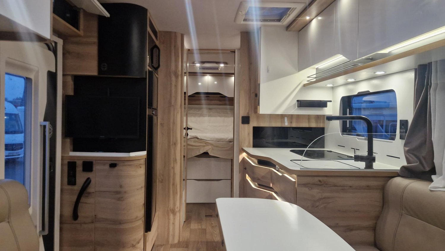 PORTE MOTO, ANTENNE SATELLITE AUTO, JANTES ALU, ALARME, BOITE AUTOMATIQUE, SUSPENSION PNEUMATIQUES, PACK LUXE, ANTENNE SAT AUTO+TV, STORE EXTERIEUR, CHAUFFAGE ALDE, CONVERTISSEUR BATTERIE LITHIUM 210AMP, BATTERIE LITHIUM 210 AH, 3 PANNEAUX SOLAIRES (175 + 2X100M)