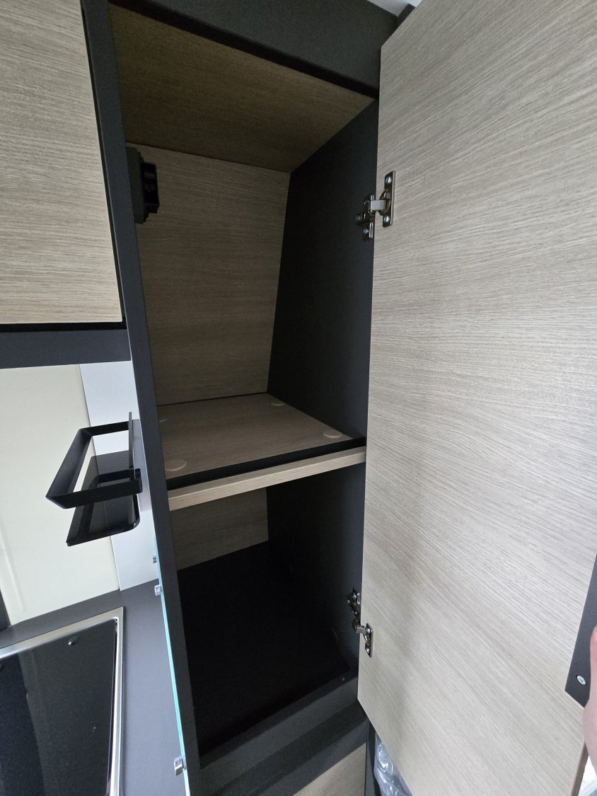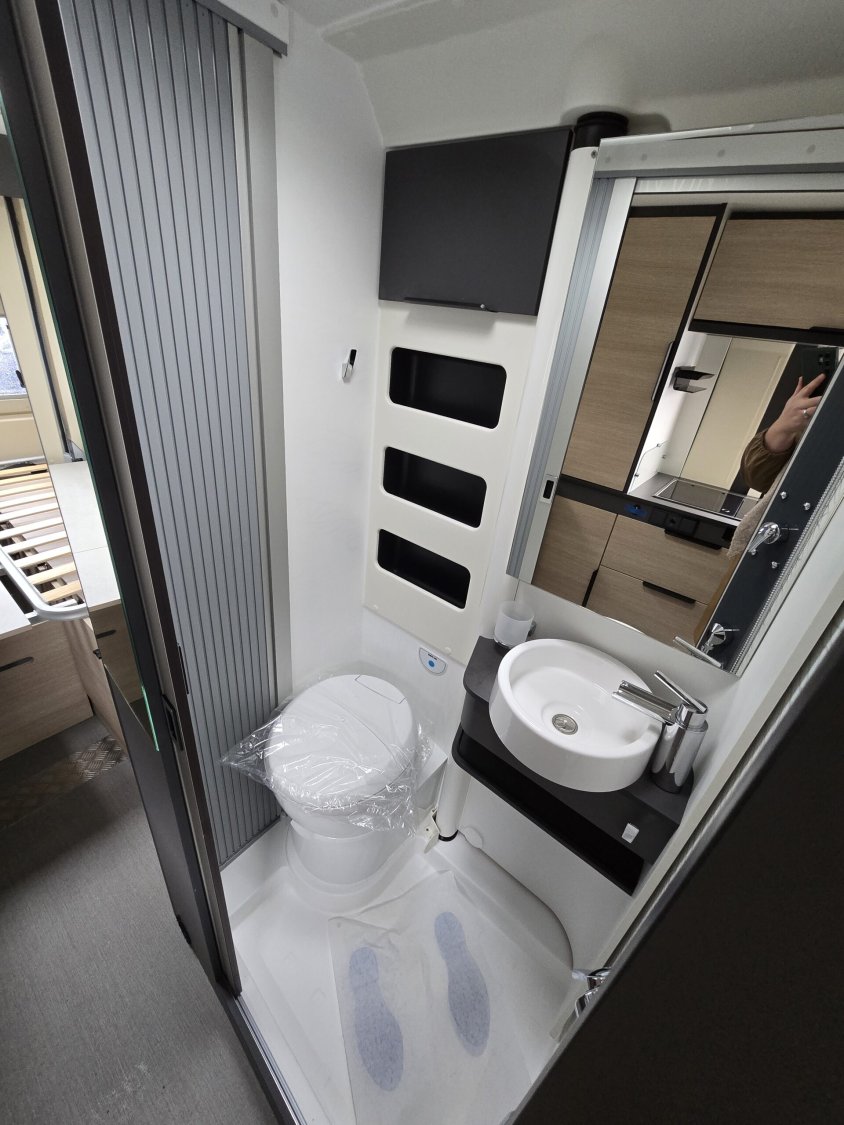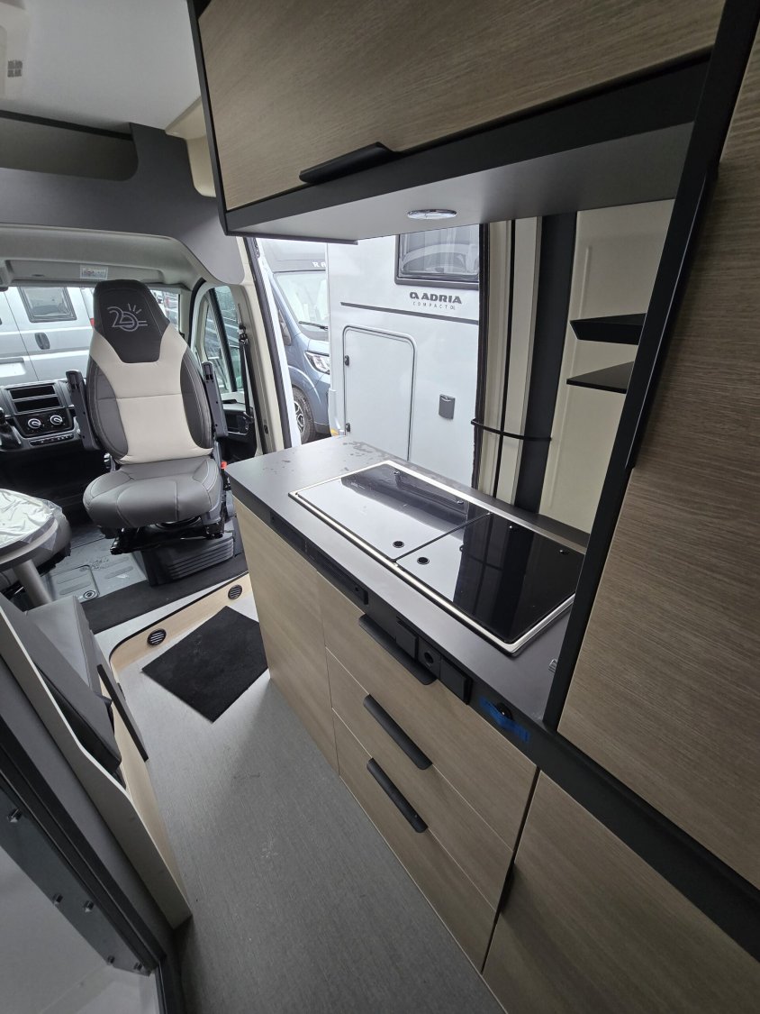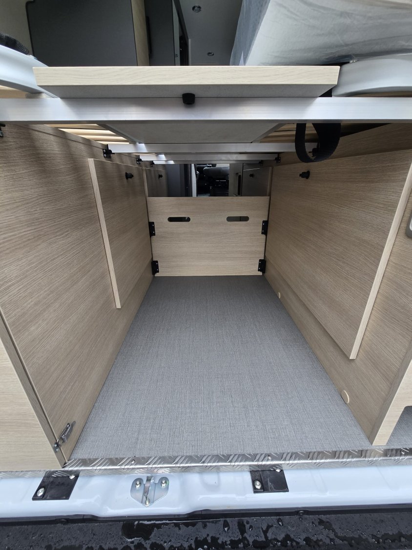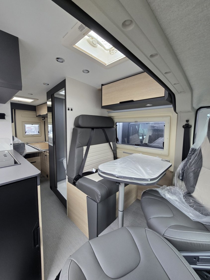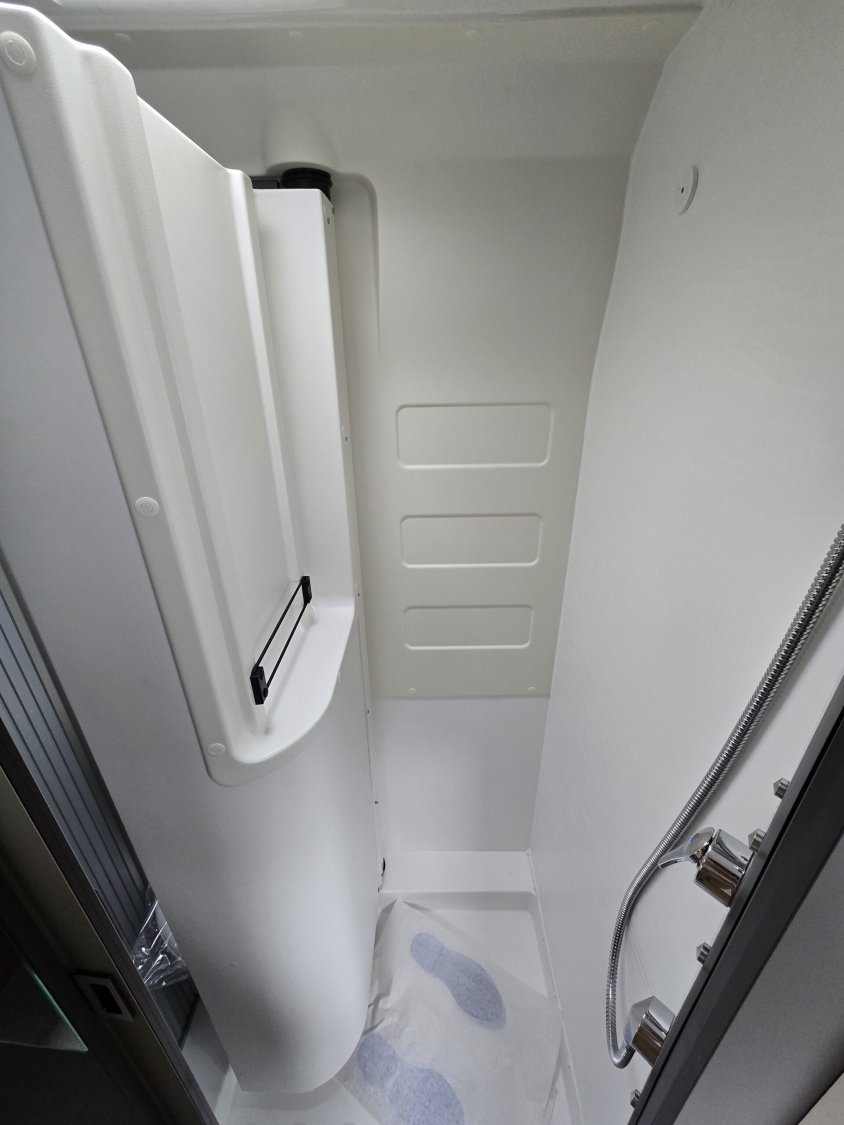 Marchepied électrique, stores pare-brise et baies cabine double pliées et cassette, porte moustiquaire ouvrant latéral