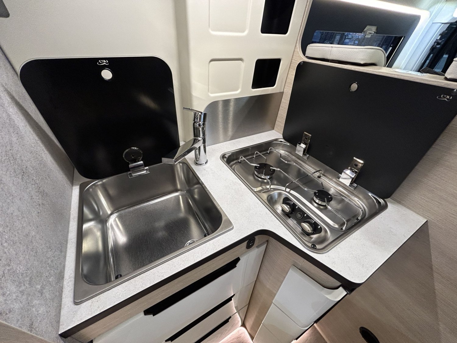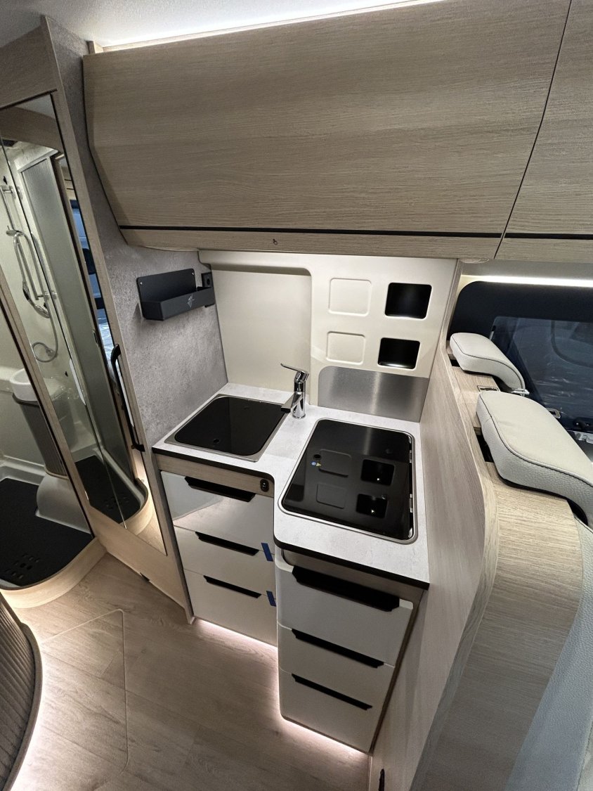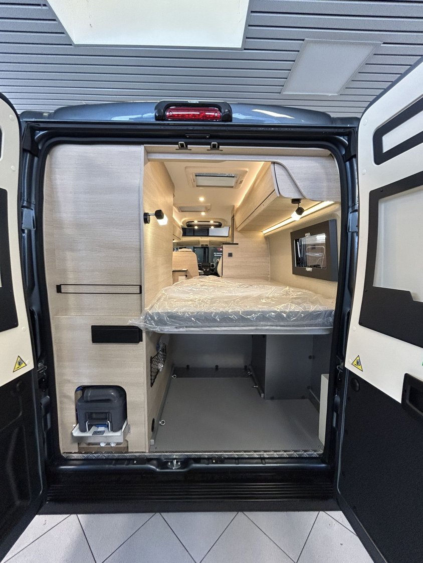 👉 Cette configuration offre un confort proche d’un camping-car profilé, tout en conservant la maniabilité d’un fourgon.