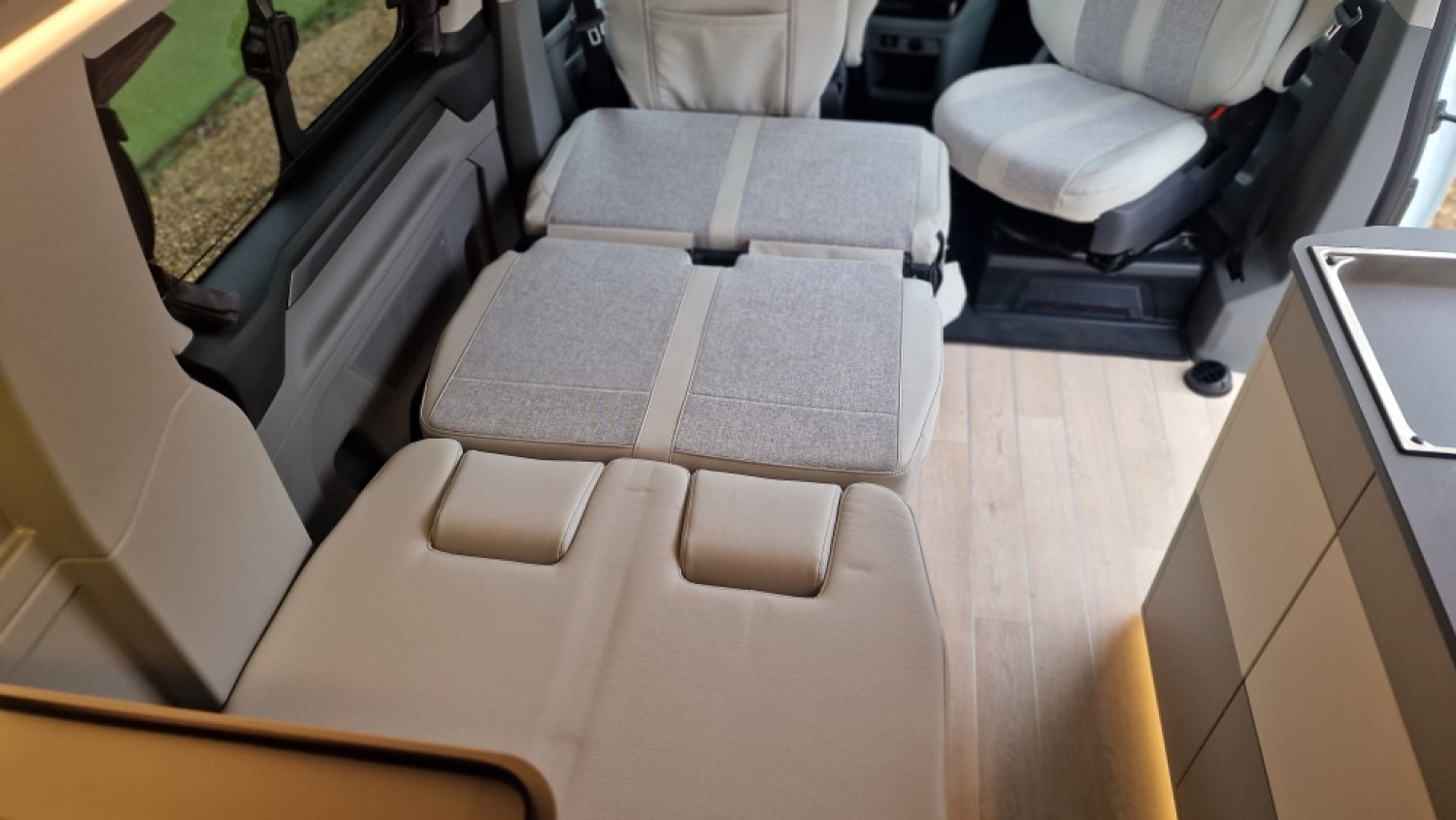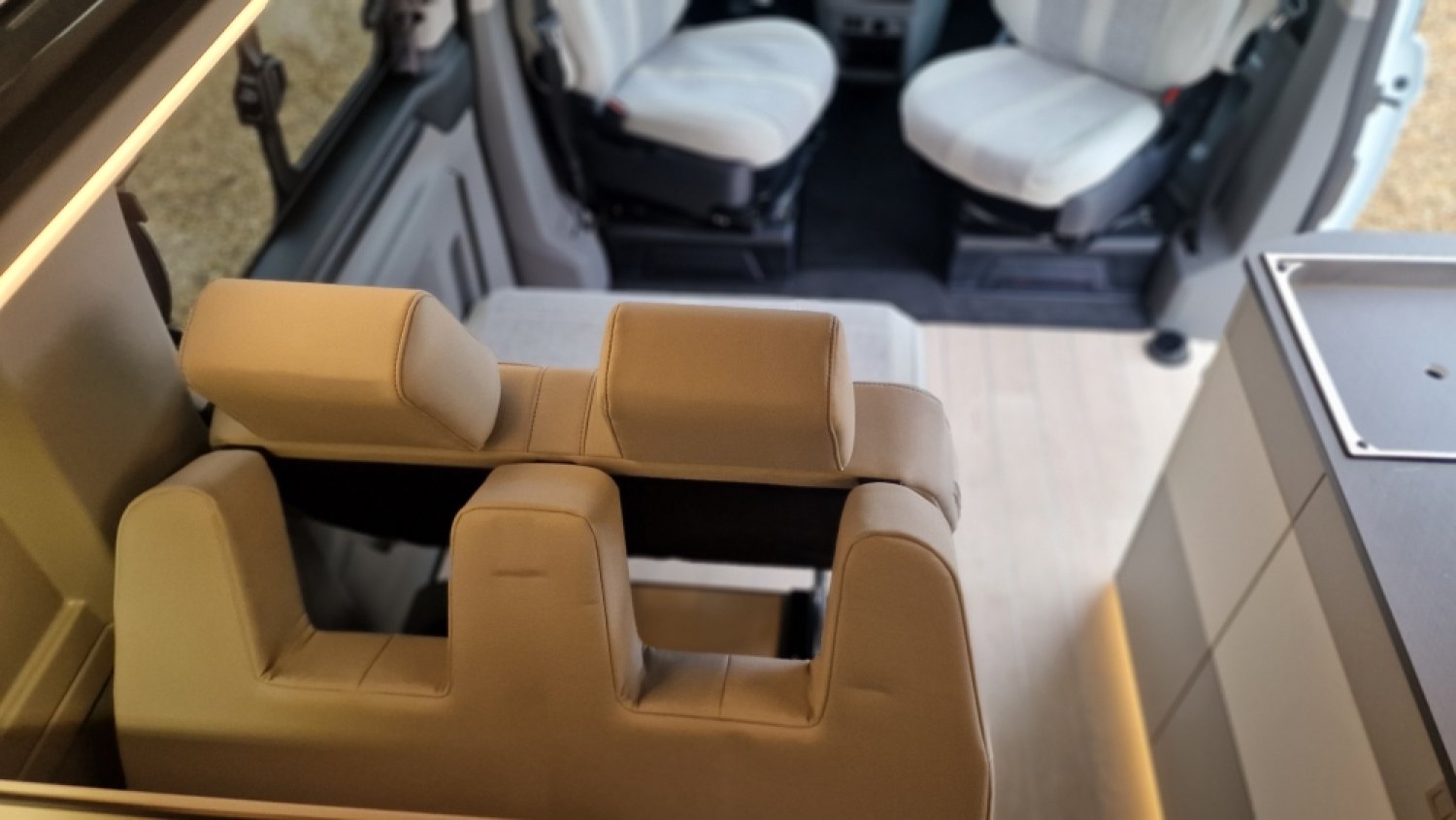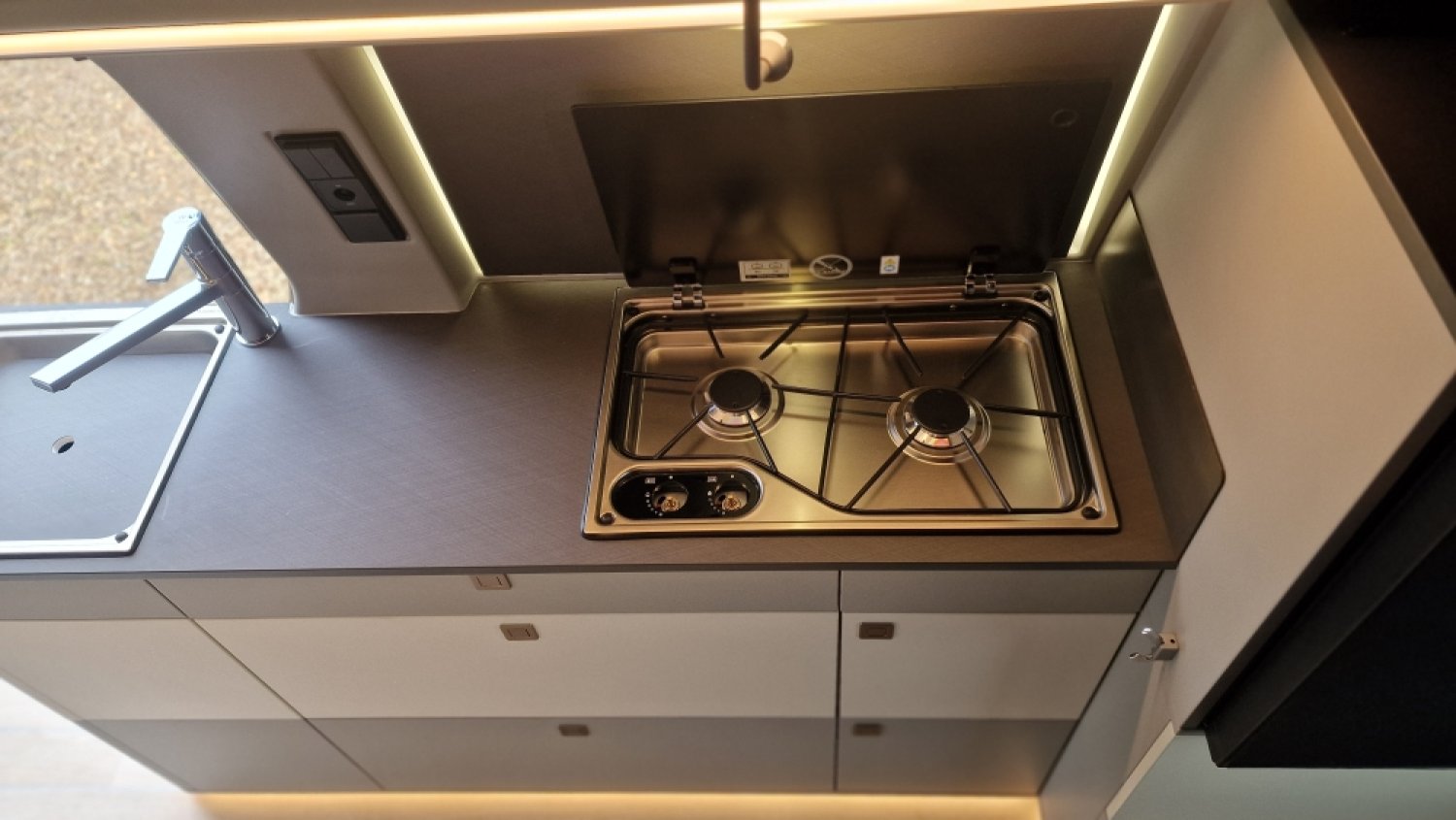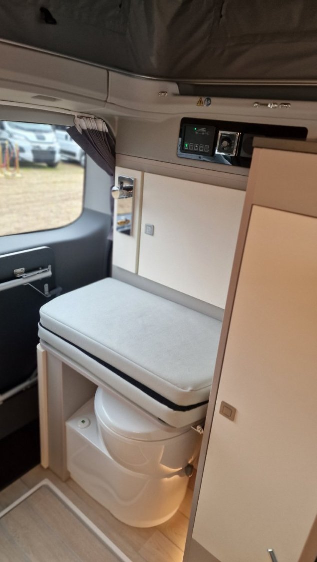 Chauffage Webasto 2000W, Cuisine avec grand évier, Douche intérieure avec bac receveur, Interface USB-USBc, Isolation Plancher 35mm : Contre- plaqué + mousse polyuréthane, Isolation Tole 6mm: mousse + film alu, Plaque de cuisson 2 feux, Réfrigérateur à compression 51L, Réservoirs eaux propres 50L / usées 50L, Rideaux isotherme cabine, Toilettes fixes
