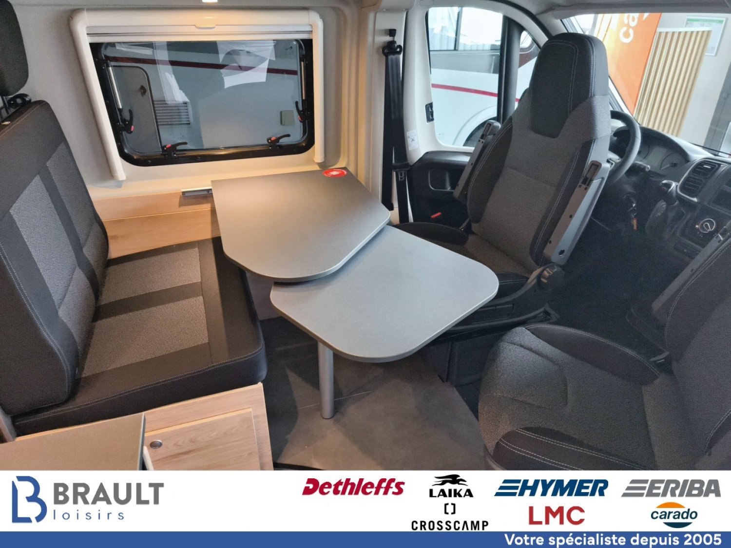 Jantes aluminium 16'' (boîte manuelle : jantes noires, automatique / maxi : jantes bicolores), Volant et pommeau de levier de vitesses en cuir, Techno Trim Prise USB (remplace l'allume-cigare), Store plissé dans la cabine de conduite : pare-brise, Store plissé dans la cabine de conduite : vitres latérales Moustiquaire de porte, Marchepied électrique, Baie dans le cabinet de toilette Lanterneau Midi-Heki 70 x 50 cm au-dessus de la dînette avec moustiquaire et store occultant, Rallonge de table pivotante, Pré-câblage pour caméra de recul Pré-équipement pour panneaux solaires, Pré-équipement TV 12V & prise TV, raccordement satellite, Bandes lumineuses à LED, Prise 230V dans le meuble haut avant gauche (dînette), Prise 12V à l'arrière, en bas à gauche, Double prise USB dans la partie arrière gauche