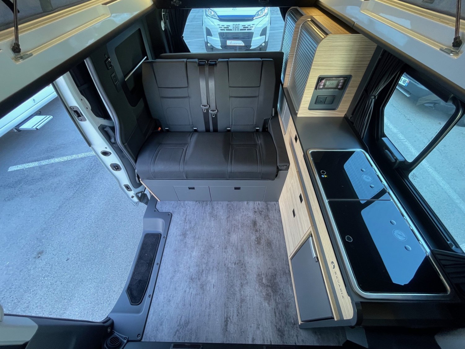 rofitez de ses 4 places de couchage, grâce à la banquette arrière et au toit relevable, pour des nuits confortables où que vous alliez. De plus, vous ne manquerez jamais d'espace de rangement grâce aux nombreux compartiments disponibles. Avec une banquette fixe, vous bénéficiez d'un vaste espace salon, idéal pour se détendre après une journée d'aventures, ainsi qu'un grand coffre pour ranger tous vos équipements.
