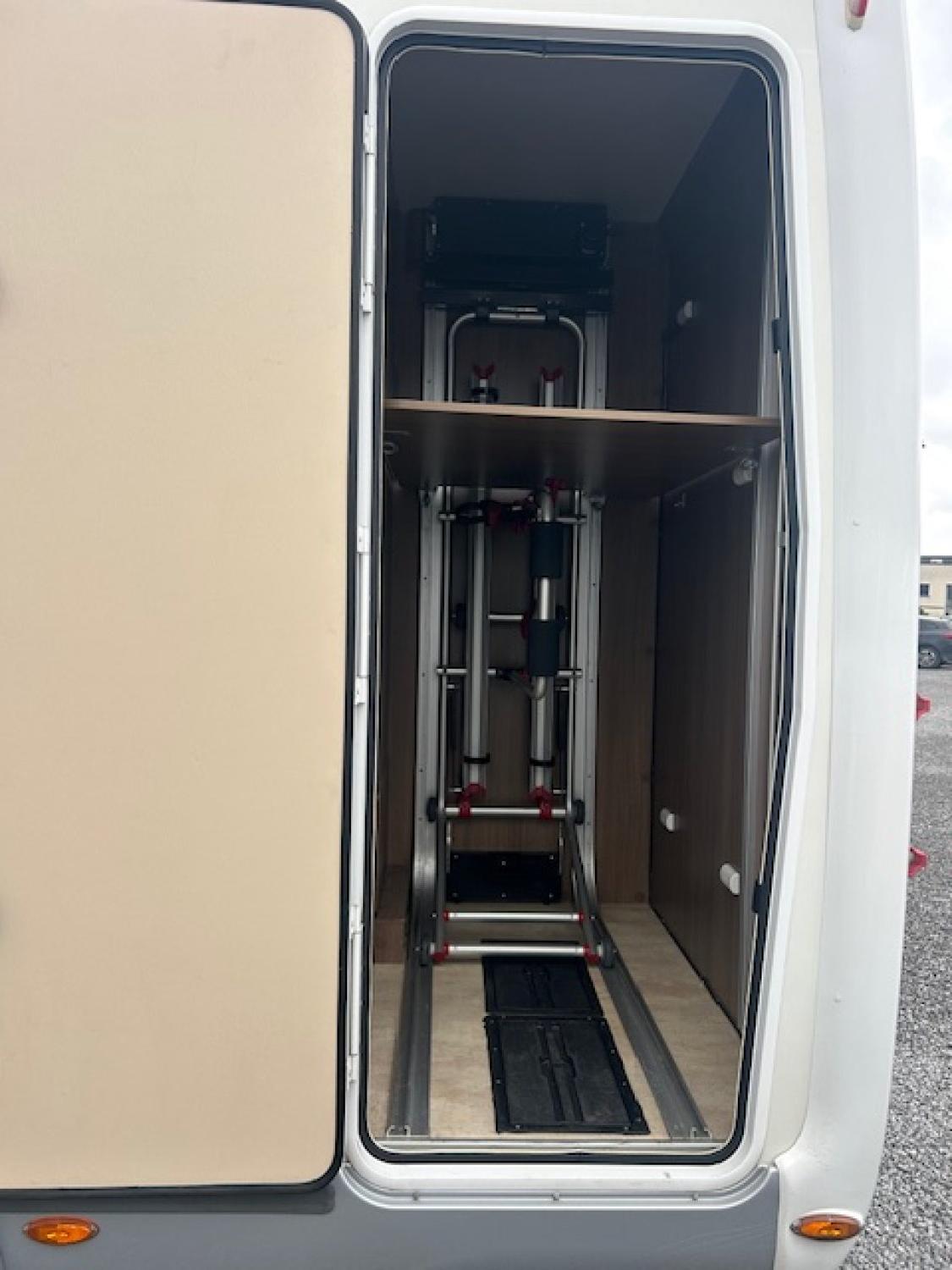 La soute latérale de grande capacité est équipée d'un rail porte-vélos électrique.