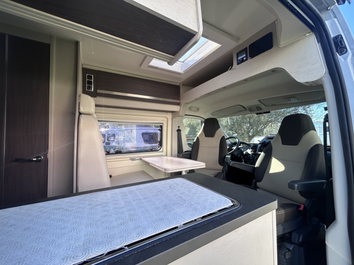 CLIMATISATION CELLULE - PORTE-VELOS THULE 2 RAILS - STORE EXT - POSTE RADIO MULTIMEDIA DOUBLEDIN ALPINE - CAMERA DE RECUL - PANNEAU SOLAIRE - RALLONGE PLAN DE TRAVAIL ET TABLE - BAIE SALLE D EAU