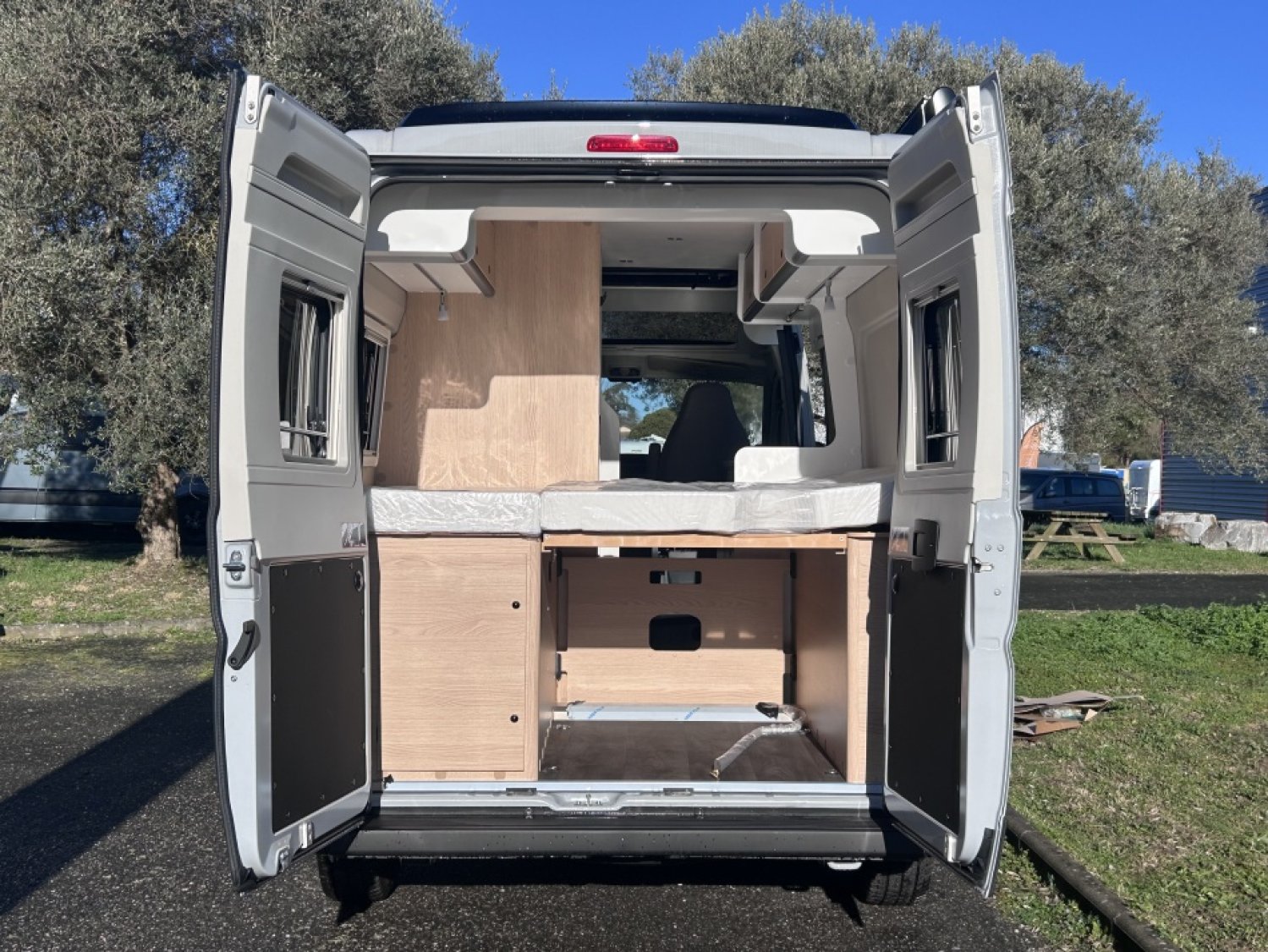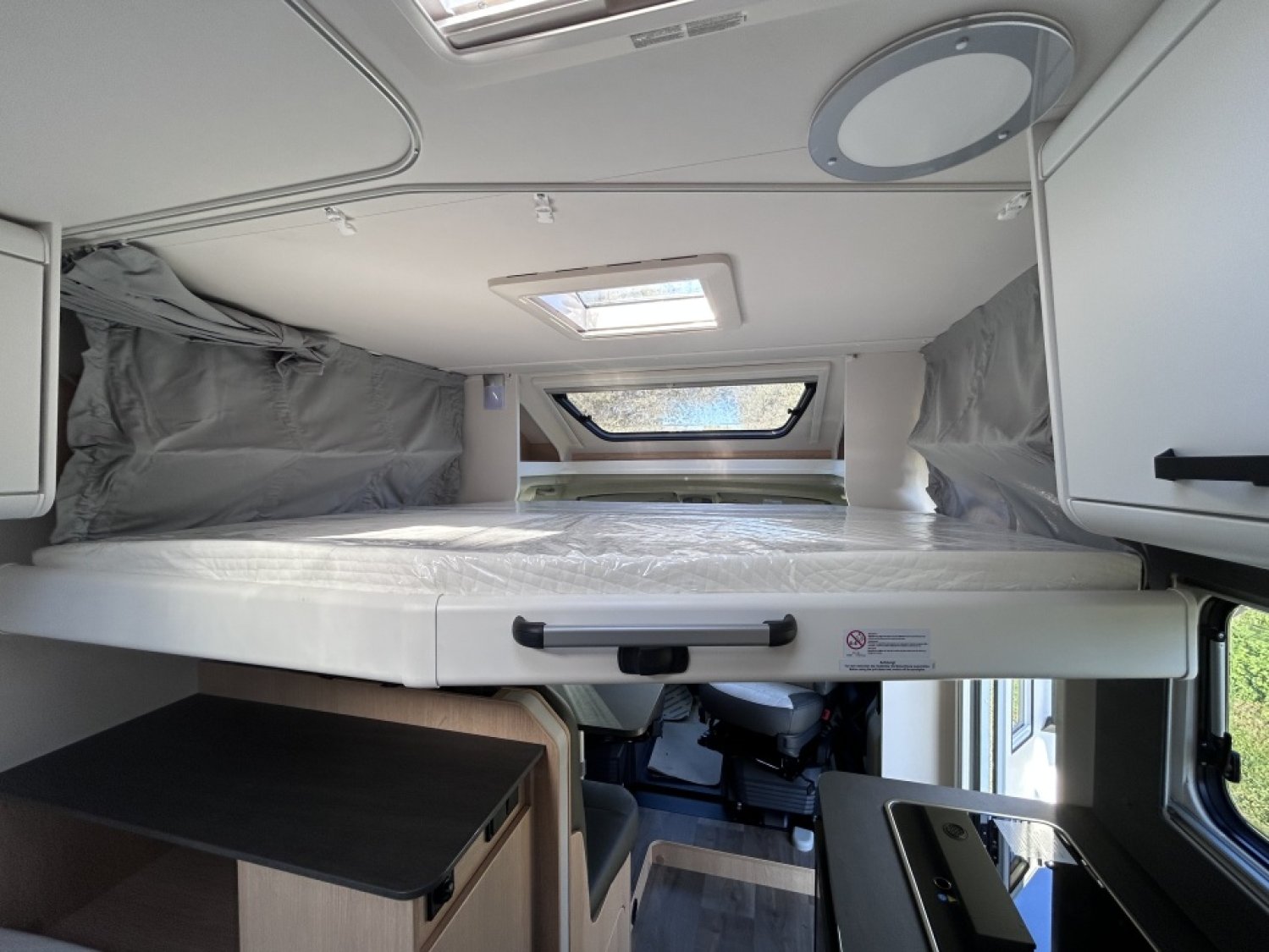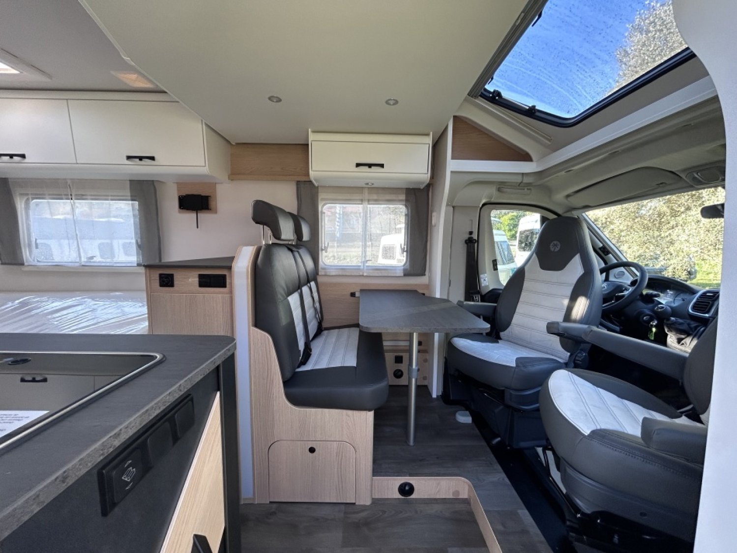 + PACK SOLEIL (Porte-cellule avec baie et moustiquaire / lanterneau panoramique 70*50 / Lanterneau transparent 40*40) + PACK JANTES ALU BI-TON (Volant et pommeau en cuir / tableau de bord finition alu / jantes alu 16") LANTERNEAU PANORAMIQUE + BAIES A CADRE + MOUSTIQUAIRE + MARCHE PIED ELEC + SYSTEME ISOFIX + RALLONGE DE TABLE + LIT PAVILLON AVEC CLIMA-PLUX + PANNEAU SOLAIRE 100W AVEC MPPT + SUPPORT TV AVEC PRE-CABLAGE + CABINE DE TOILETTE AU FOND AVEC DOUCHE INTEGREE + BARRE SECHE-SERVIETTE + LANTERNEAU WC AVEC MOUSTIQUAIRE +