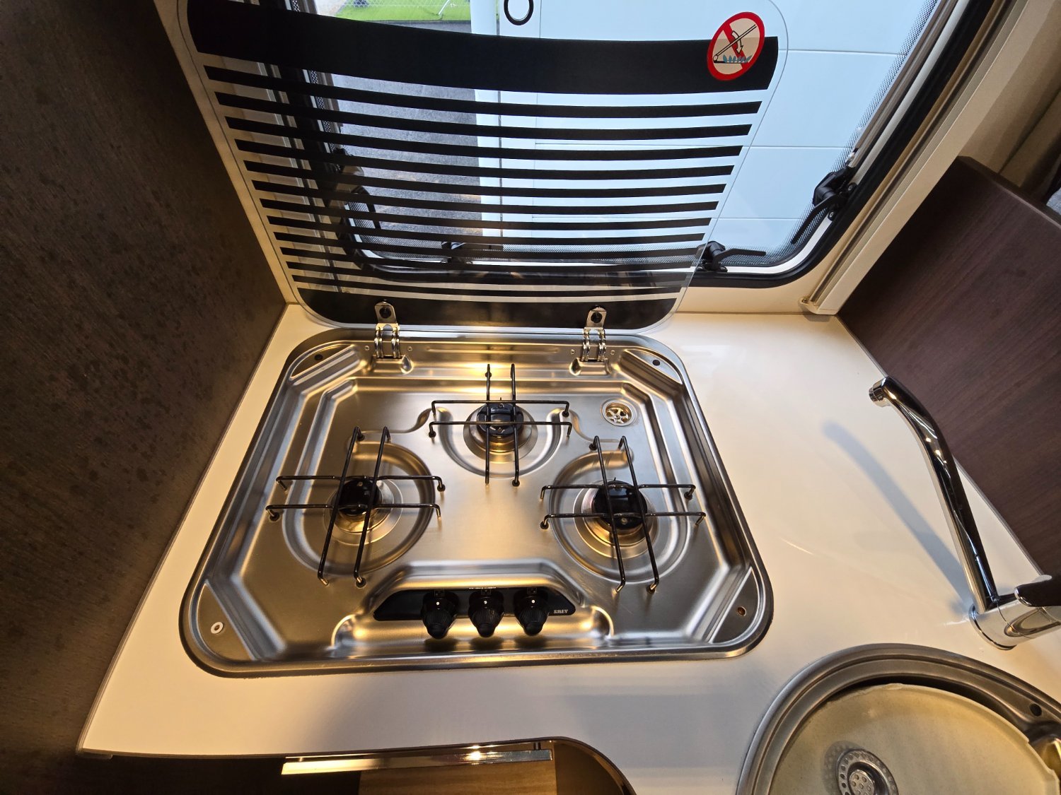 Couchage : Lit dinette (210 x 90 cm et x cm), , Lit permanent arrière (190 x 139 cm), Lit de pavillon (193 x 140 cm)