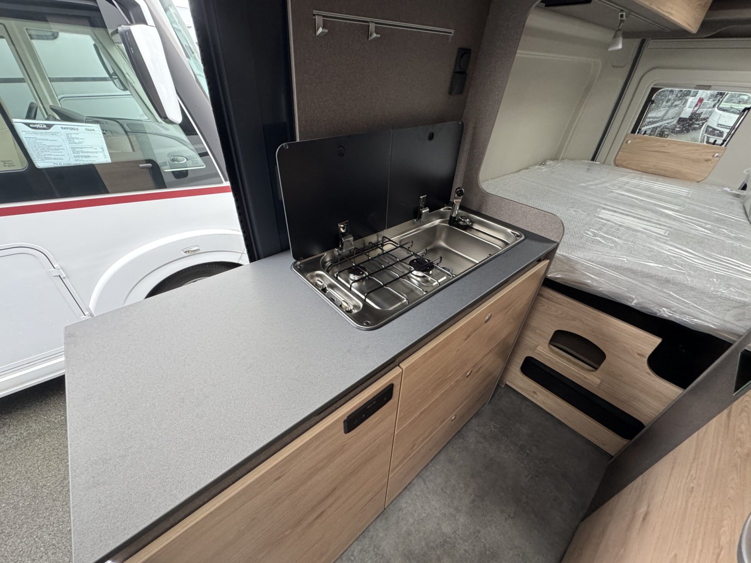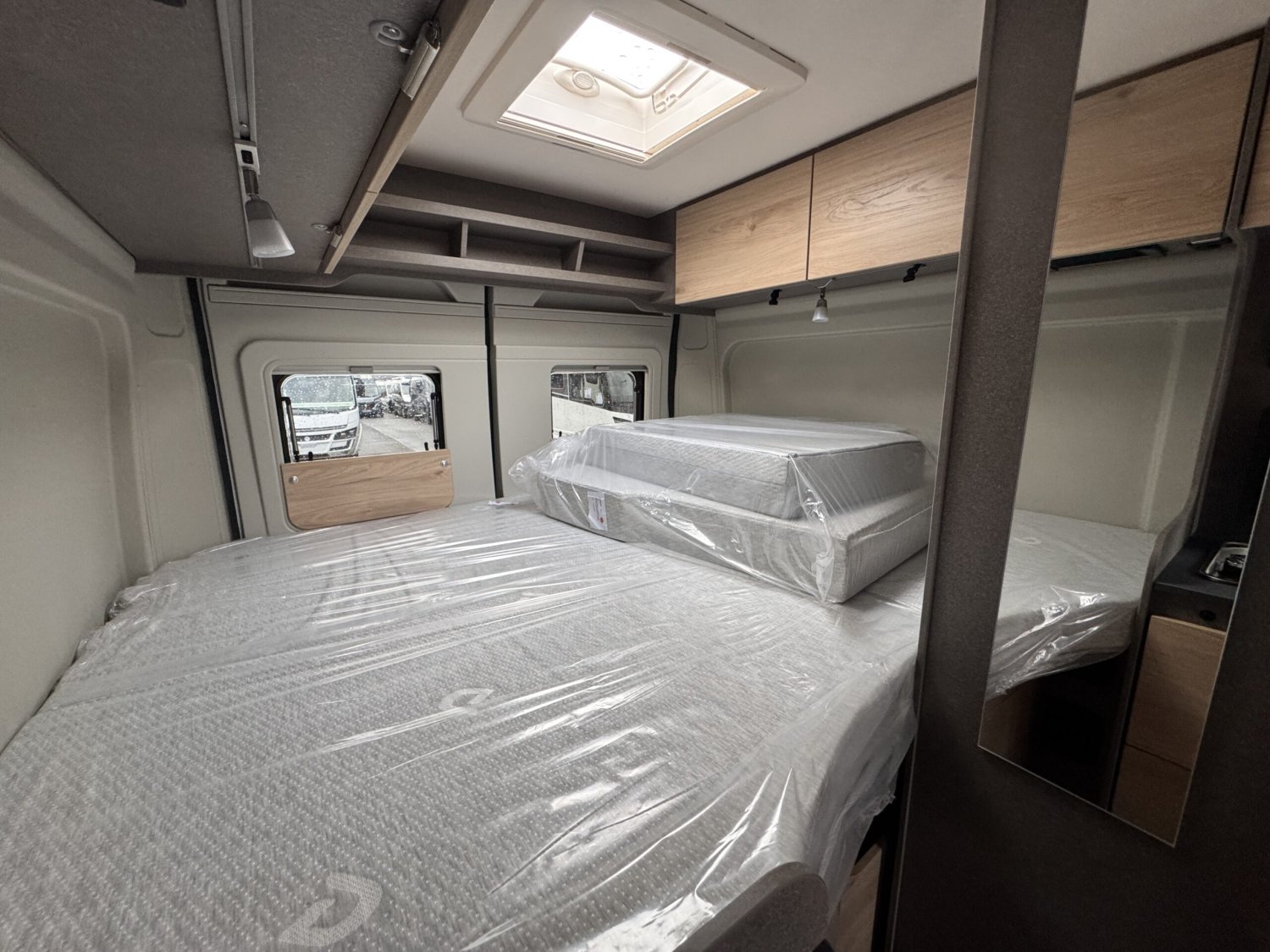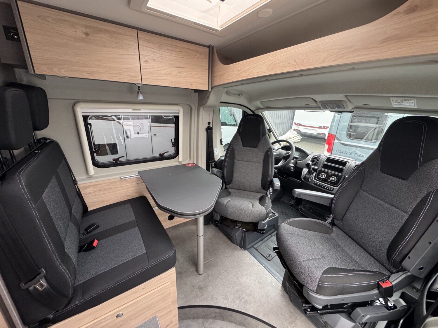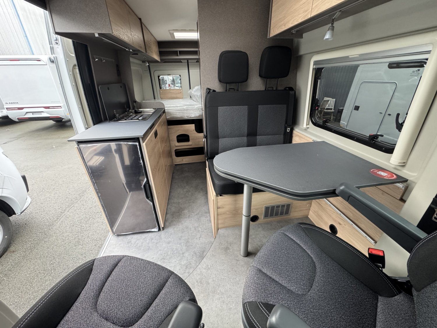 Pack ACTIVE : Volant et pommeau de levier de vitesses en cuir – moustiquaire de porte – bandes lumineuses LED – marchepied électrique – rallonge de table pivotante – prise 12V à l’arrière – stores plissés dans la cabine de conduite – baie dans cabinet de toilettes – pré-équipement panneaux solaire etc..