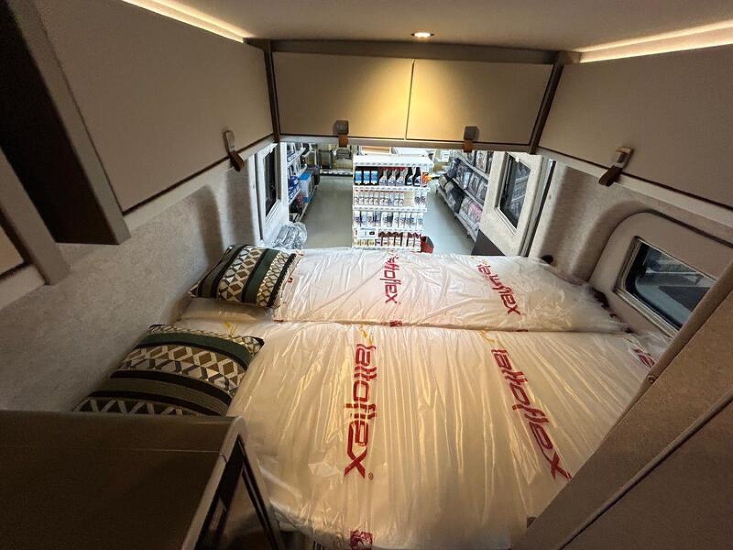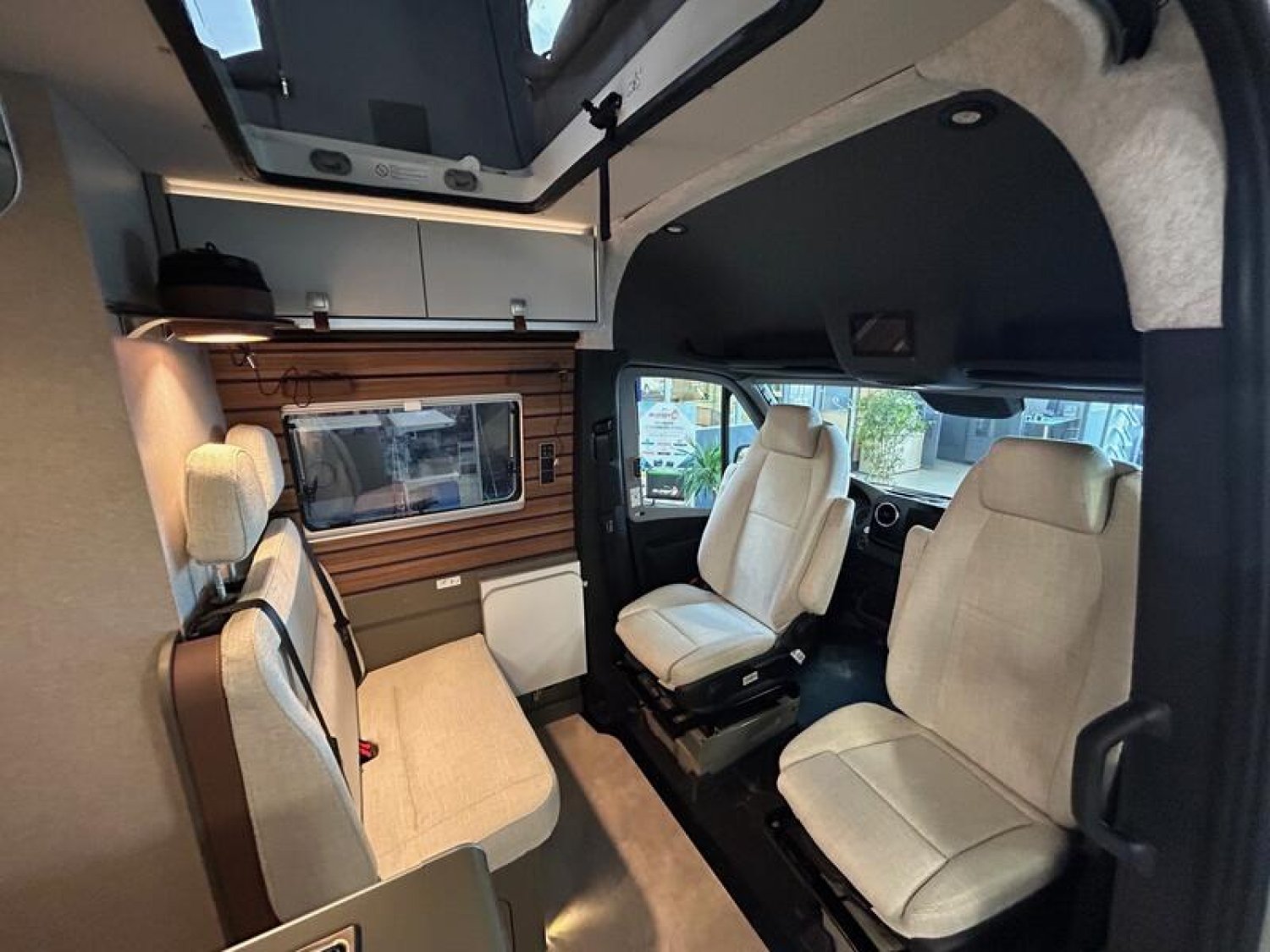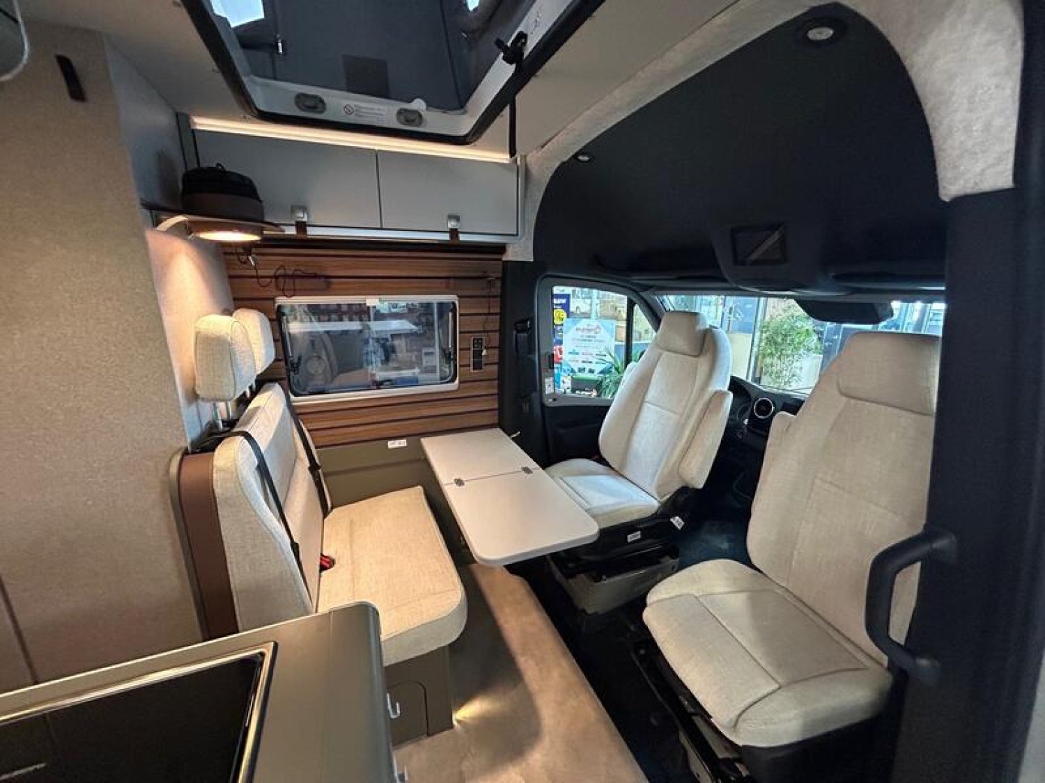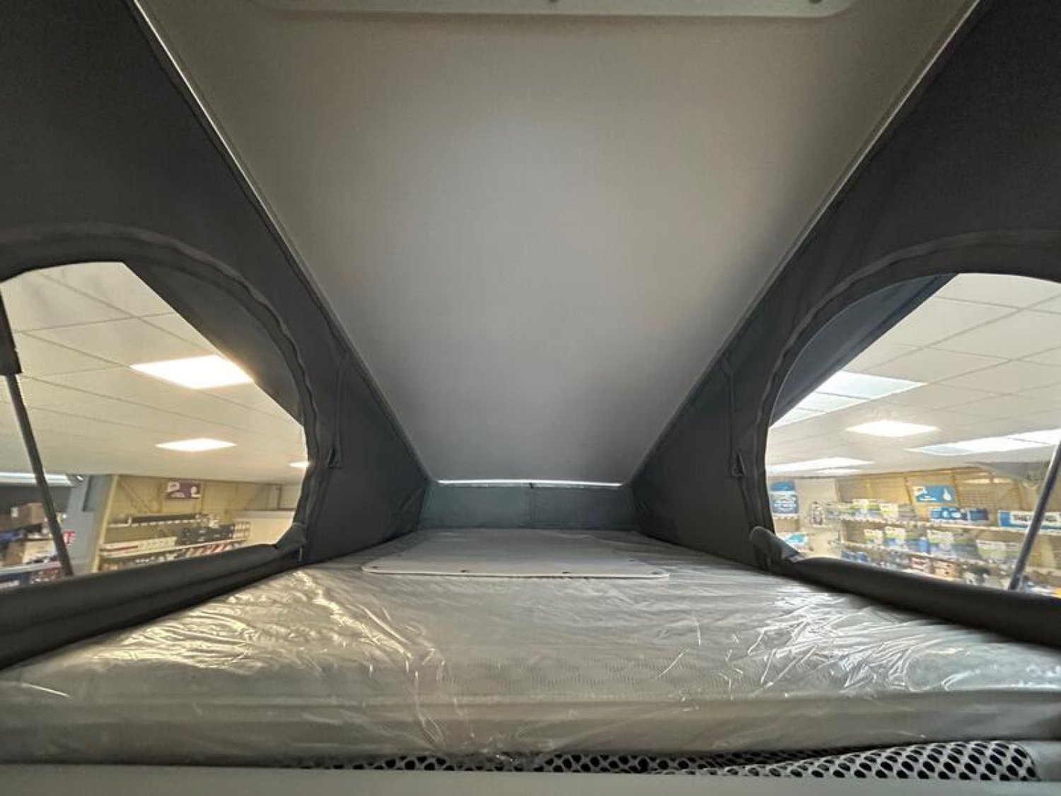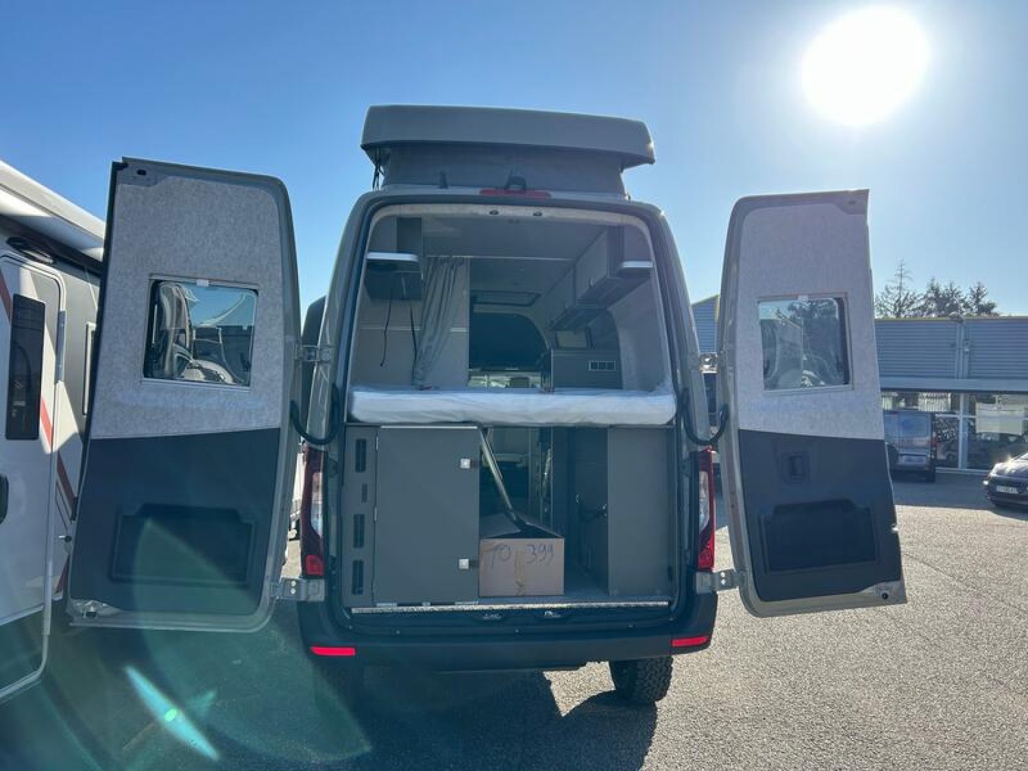 Jantes tôle 16" (coloris noir) avec pneus tout-terrain (All-Terrain) 2005€/Transmission intégrale 4x4 permanente, feux arrière à technologie LED 7555€ + Feux antibrouillard avec feux de virage 355€/Système de gestion automatique des phares 395€ + Protection sous moteur 290€/Limiteur de vitesse en descente Downhill Speed Regulation (mode Offroad) 595€ + Toit relevable coloris du véhicule (lit double maxi avec système grand confort) 5030€/Baie projetante arrière côté gauche avec store occultant et moustiquaire 420€ + Toit relevable couleur carrosserie avec maxi couchage + Marchepied électrique tout-terrain (escamotable) pour une meilleure garde au sol 960€/Résistance électrique de 1 800 W (pour chauffage à air chaud diesel de 6 kW) 585€ + Panneaux solaires 2 x 95 W avec régulateur MPPT et écran d'affichage (pour toit relevable) 1705€/Filtre pour le circuit d'eau propre 250€ + Sérigraphie Carbonline (effet carbone noir) 365€/Sérigraphie Carbon des baies latérales (stickage contour des baies) 755€ : 26295 €