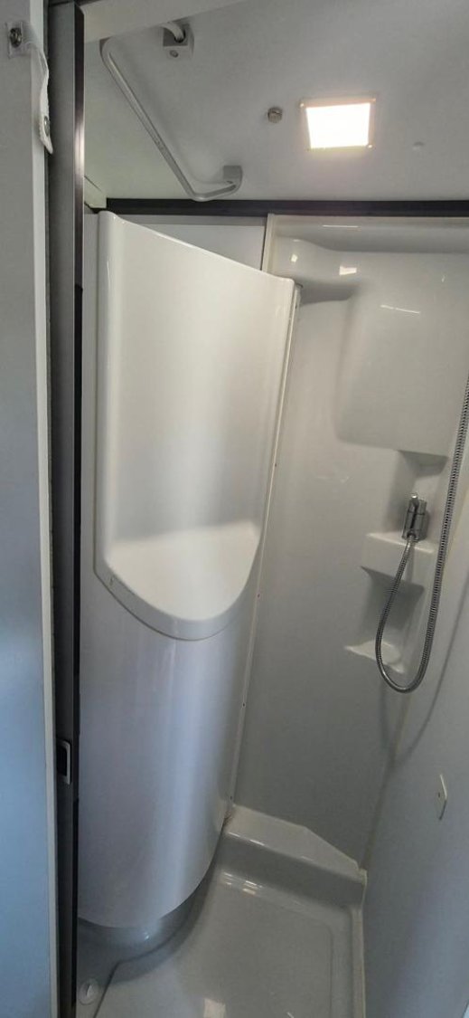 Véritable douche indépendante et coin toilette séparé avec cloison optimisée.