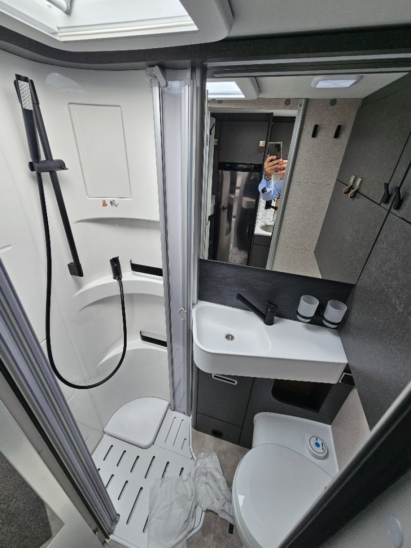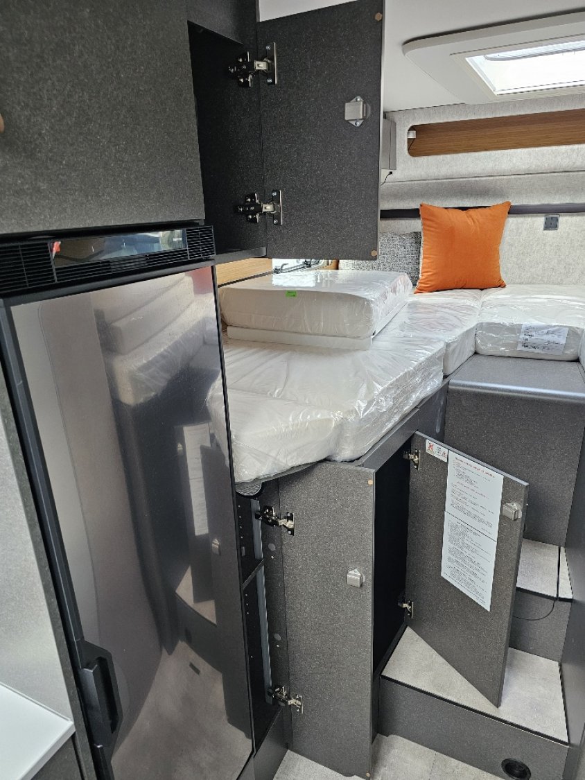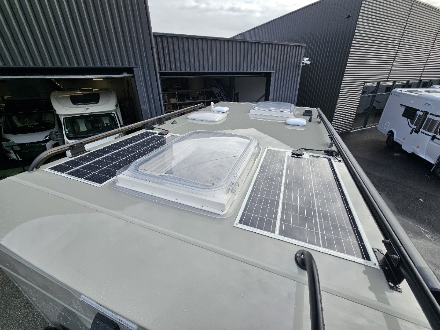 Feux LED haute performance, Clim auto THERMOTRONIC, Régulateur de vitesse actif , Système multimédia MBUX avec , navigation et caméra de recul, Système de gestion auto des phares, Jantes alliage léger Delta Hanma 18", avec pneus tout, terrain (All, Terrain), Roue de secours Delta 18' et support, Protec sous châssis, Pare, chocs revêtus peinture Raptor, Feux antibrouillard / feux de virage, Barre LED 44" au, dessus cabine, Set d’outils (bêche pliante, hache.) , Élargisseur d'ailes avant, Douche extérieure dans le garage, Draps, housses sur mesure AR, Tôle et moquette dans le garage, Revêtement supplémentaire, niveau du cabinet de toilette, Système Ambient Light, Prises suppl : 3 x 230 V / 1 x 12 V, Transfo dînette en L en couchage, Store extérieur avec éclairage LED, Porte cellule confort , Galerie de toit avec échelle , Routeur Wi, Fi 5G, Résistance élect de 1 800 W , Deuxième cassette de toilettes, Pann solaires 2 x 95 W avec régul MPPT, 3 modules batterie 80 Ah LFP ( 320Ah de batteries), Convertisseur 12 V à 230 V, 1800 W