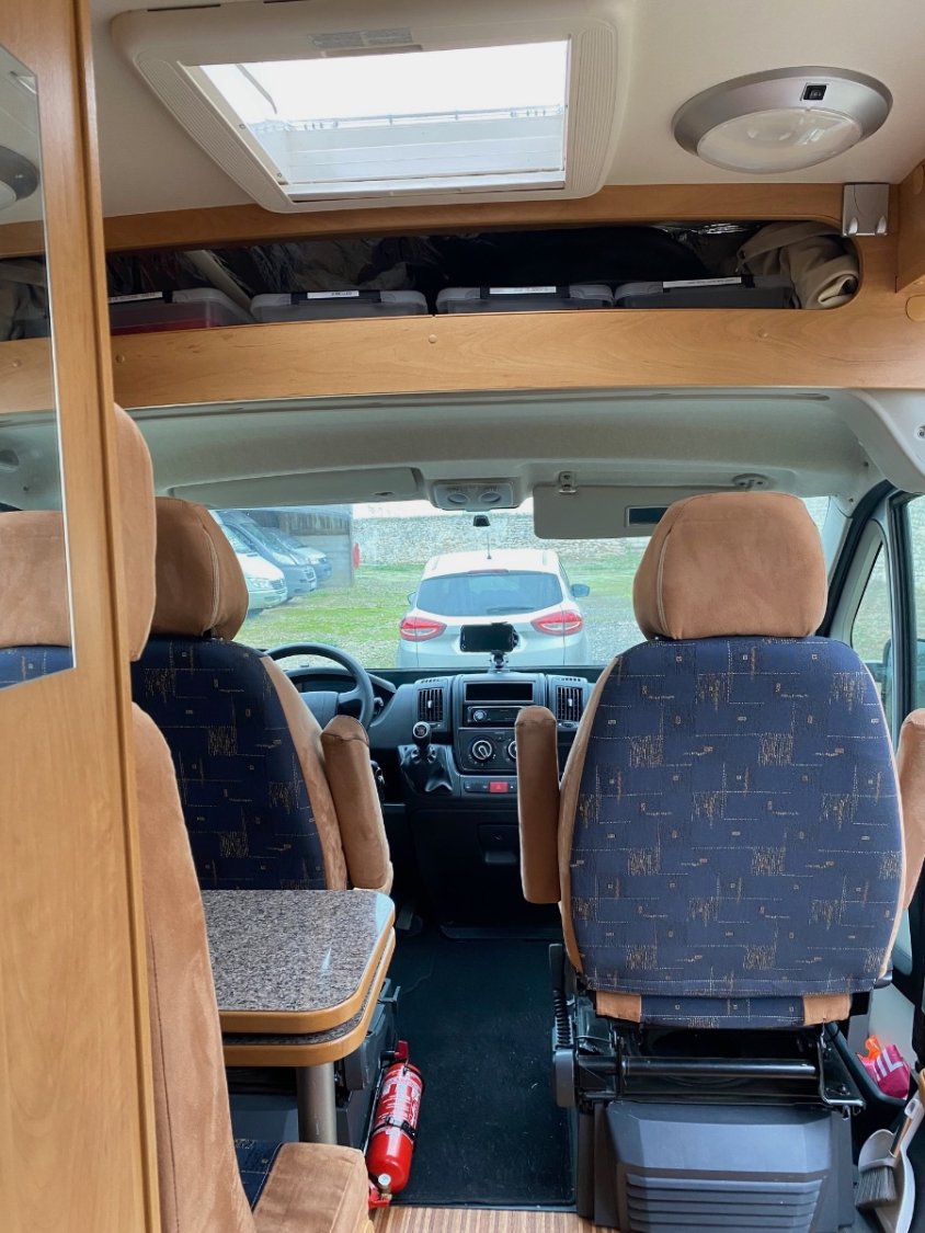 Places assises carte grise : 4 Places couchages : 3 (1 lit double permanent à l'arrière + 1 kit 3ème lit dînette)