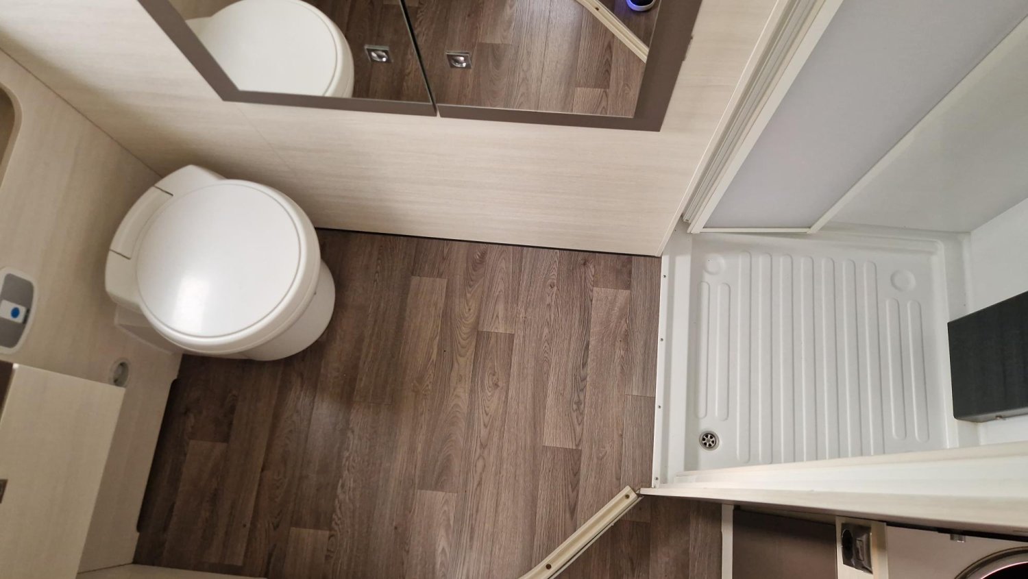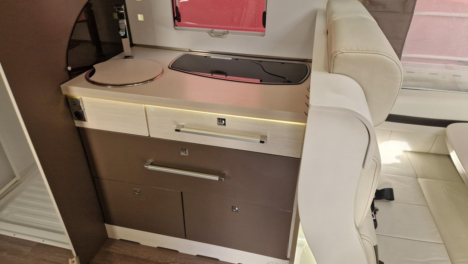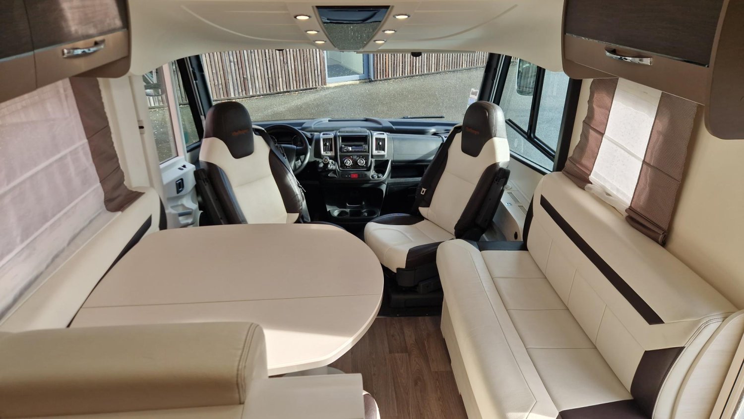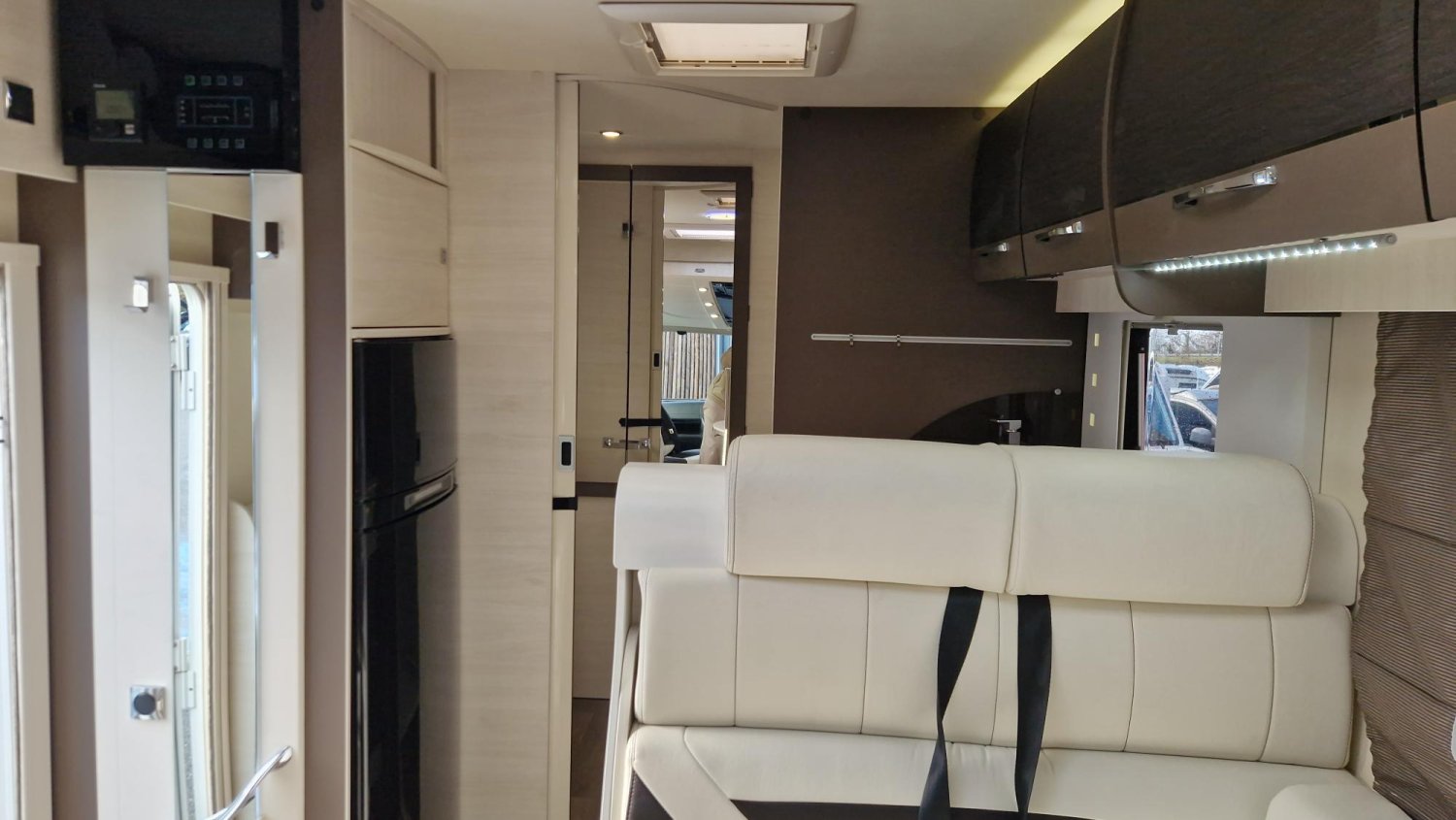 Un intégral particulièrement bien conçu , qui privilégie la vie à bord avec sa salle d'eau et son salon hors norme.