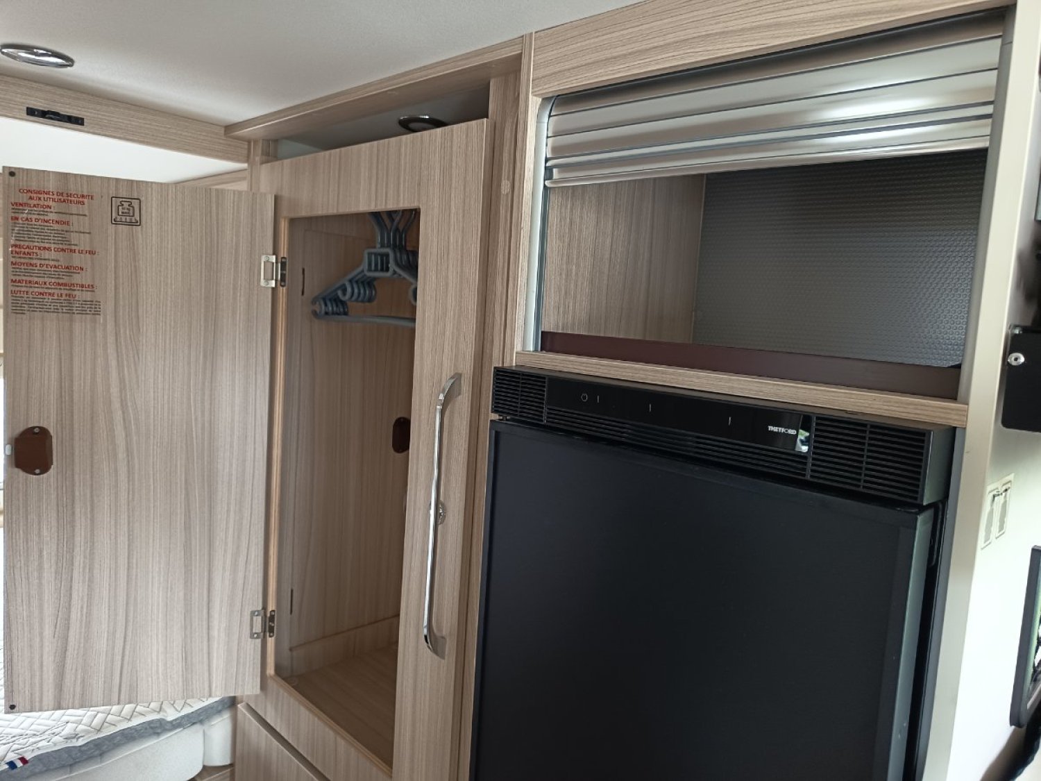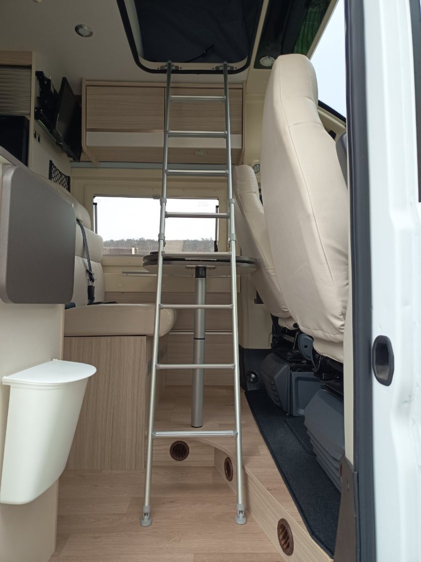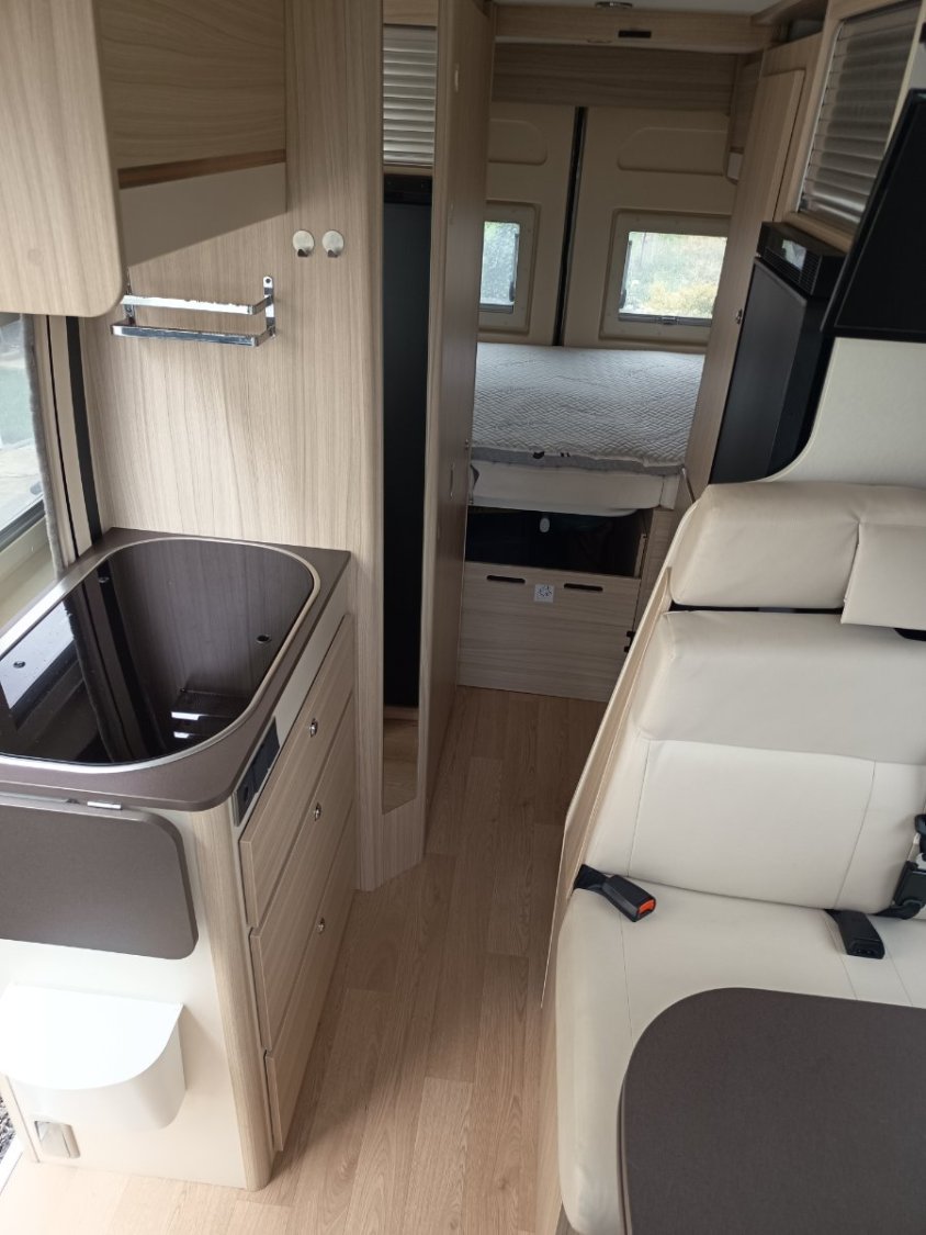 Tout est d’origine « sorti de la concession ». Les 4 pneus sont encore corrects, les batteries de la cellule raccordées au panneau solaire de toit 140 W fonctionnent sans problème. Le fourgon est autonome en électricité.