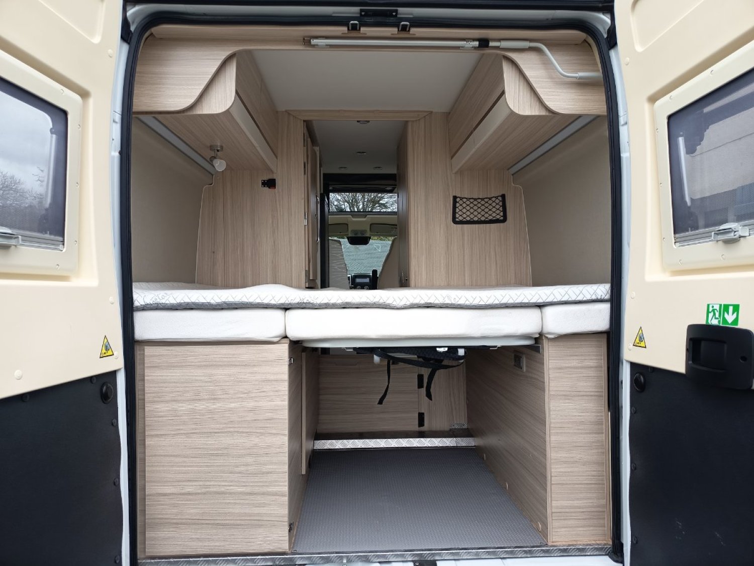 Ce fourgon aménagé est un format idéal pour un couple ou une famille jusqu’à 4 personnes. Homologué 4 places (carte grise), il offre un lit deux places (135x190) à l’arrière et un lit deux places (140x200) dans le UP (réhausse de toit).