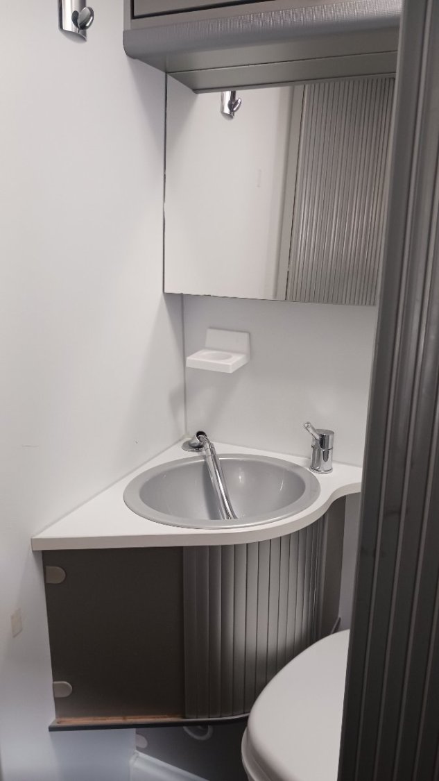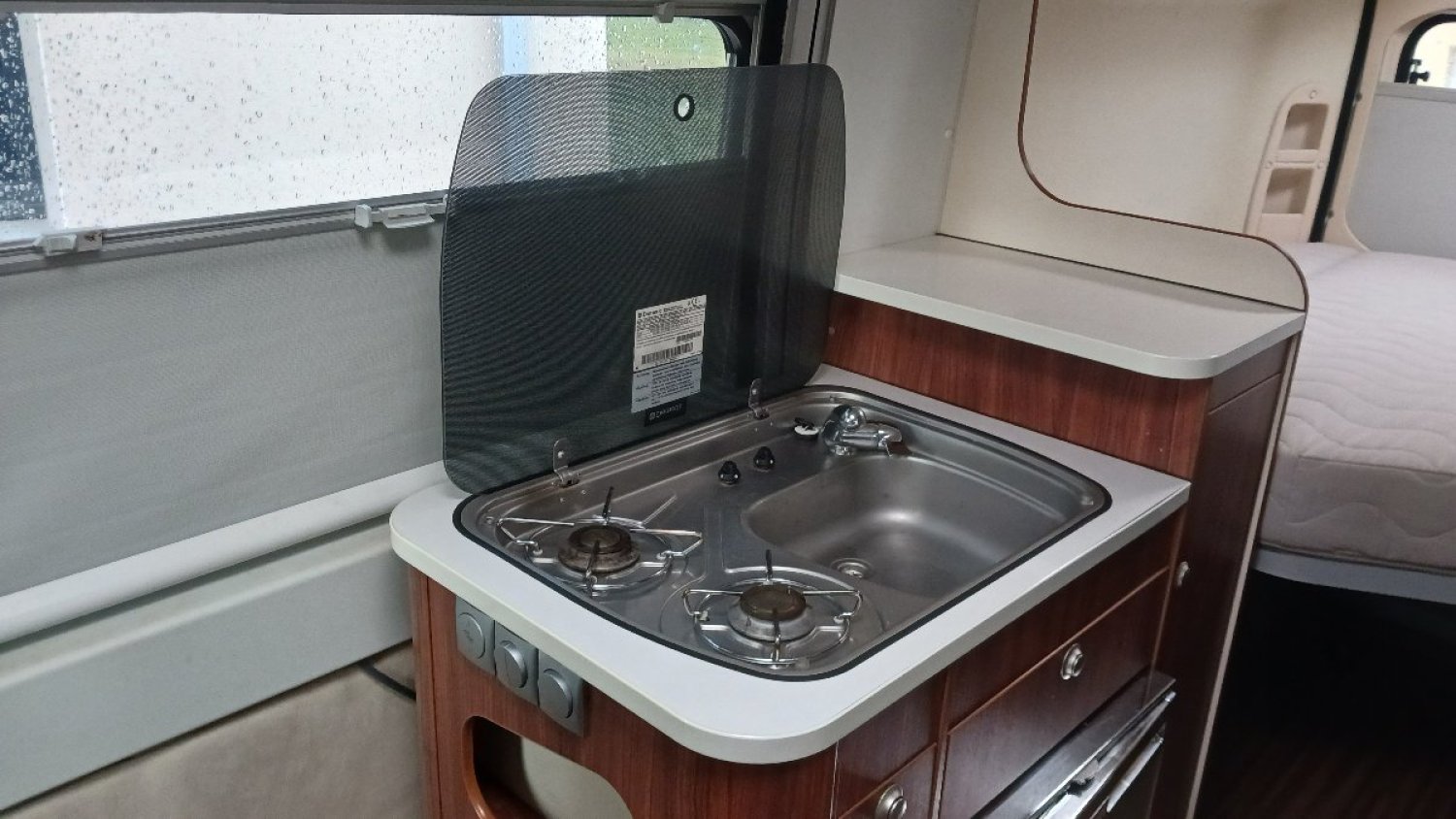 Cellule : sellerie des sièges neuves, 2 batteries cellule, panneau de commande, prise 220 et 12V, 2 bouteilles de gaz 13 kg, chauffage au gaz à air pulsé combiné eau chaude programmable, 100 L eau propre et 90 L eaux usées, nombreux rangements, lit d’appoint neuf jamais servi, éclairage d’ambiance, etc…