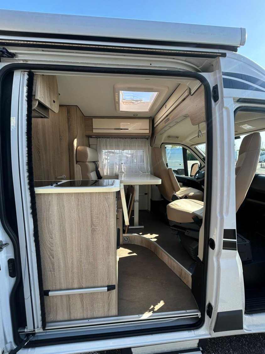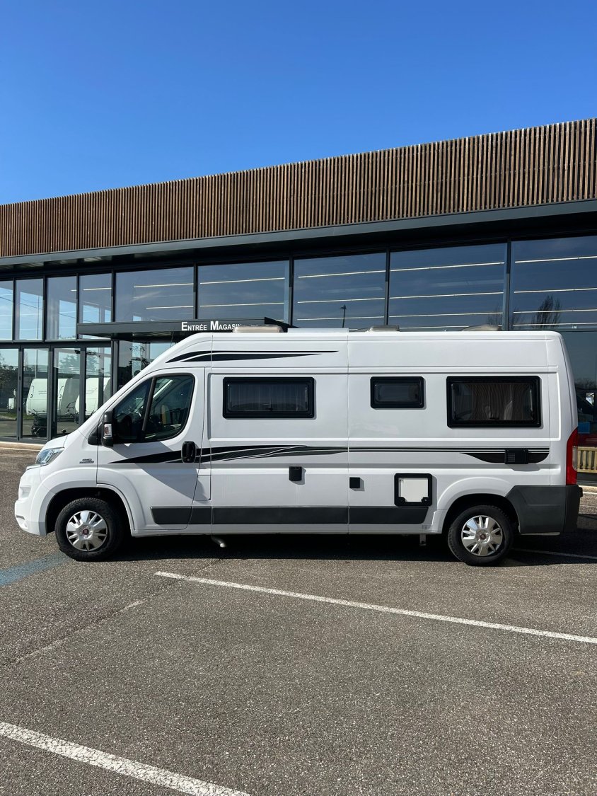 Le Leader Camp 2017 de Font Vendôme est un fourgon aménagé de 5,99 m de long, qui combine confort, modularité et qualité de finition. Il est doté d’un lit transversal à l’arrière, d’un réfrigérateur à compression 134 L et de nombreux équipements haut de gamme. Ideal pour 3 personnes, ce modèle se distingue par un mobilier raffiné, de l’éclairage LED amélioré et un chauffage diesel.