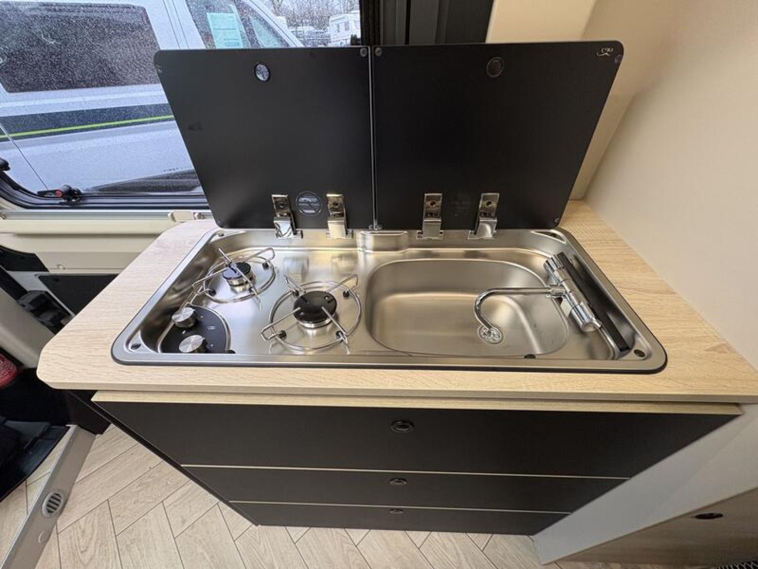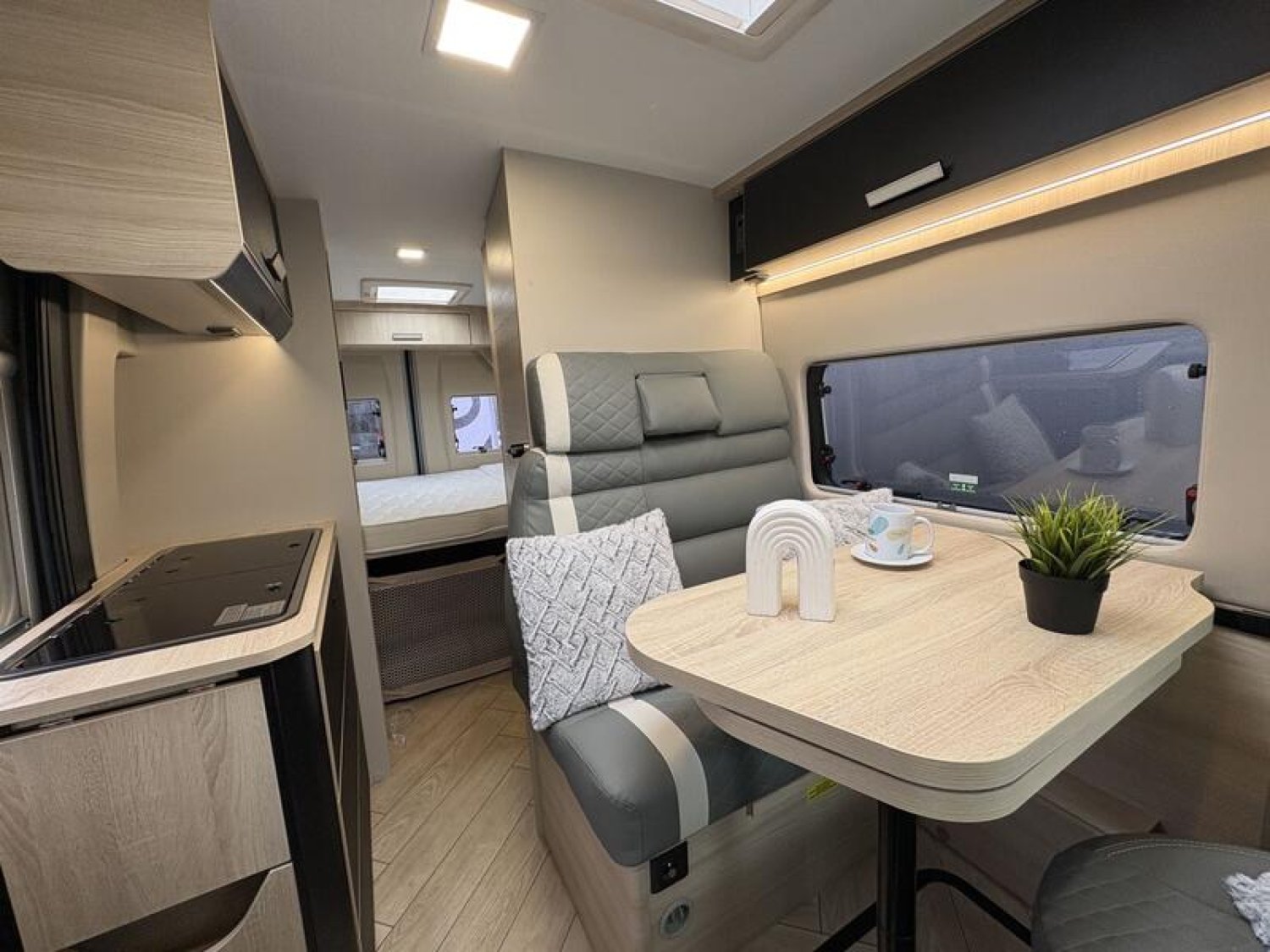 OPTIONS CONSTRUCTEUR PACK LOOK : Volant en cuir, Bouches d'aération chromées, Jantes alliage 16'' Noir + Accessoires Van Sport : Store extérieur - auvent, panneau solaire 200W, éclairage extérieur porte d'entrée, moustiquaire de porte, stores intérieur cabine, compléments couchage dinette : 3000 €