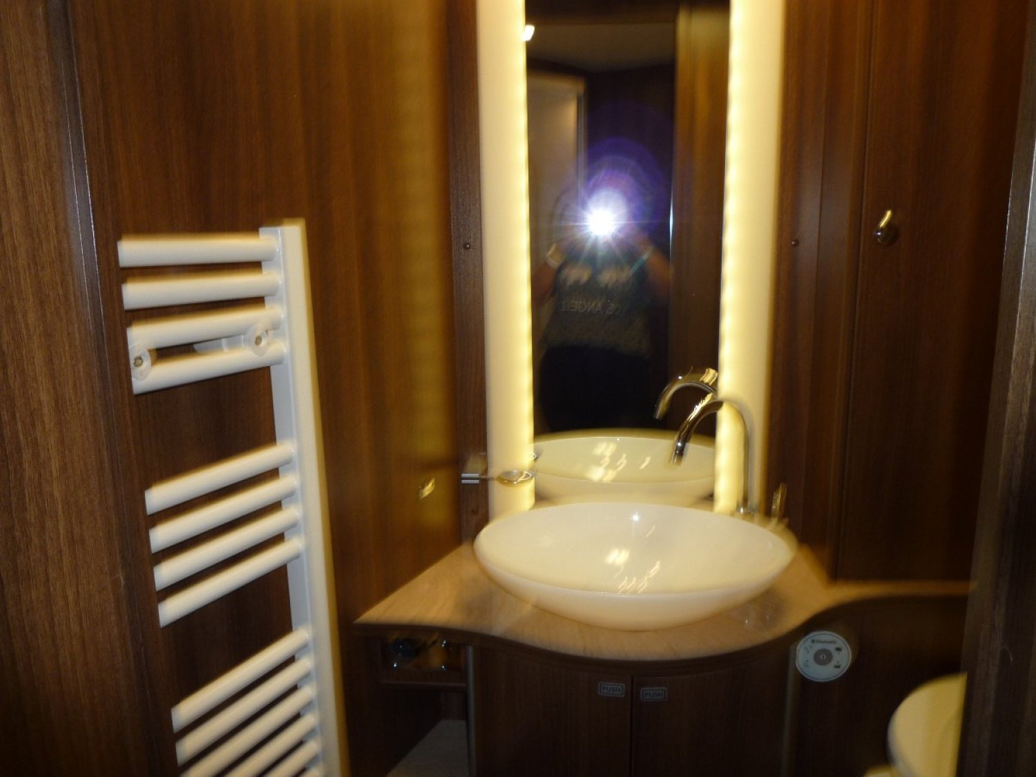 grande soute transversale (1 porte de chaque coté) , douchette extérieur