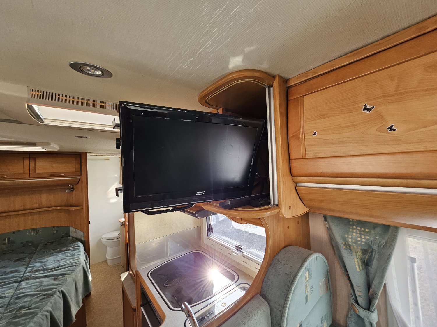 ANTENNE SATELLITE MANUELLE 65 CM, TV LCD 16, AUTORADIO, CAMERA DE RECUL NOIRE ET BLANCHE, DECODEUR TNT SAT