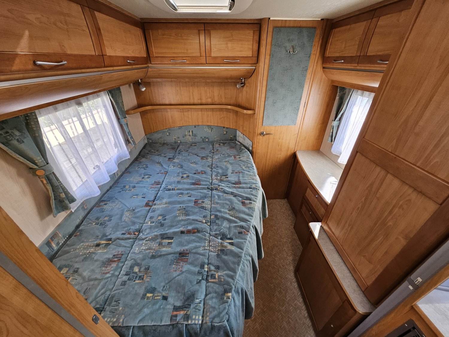 Un lit à la française (140x190) sur sommier à lattes, accessible facilement, libérant un bel espace de circulation dans la cellule.