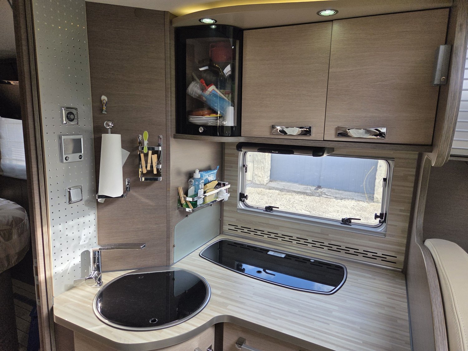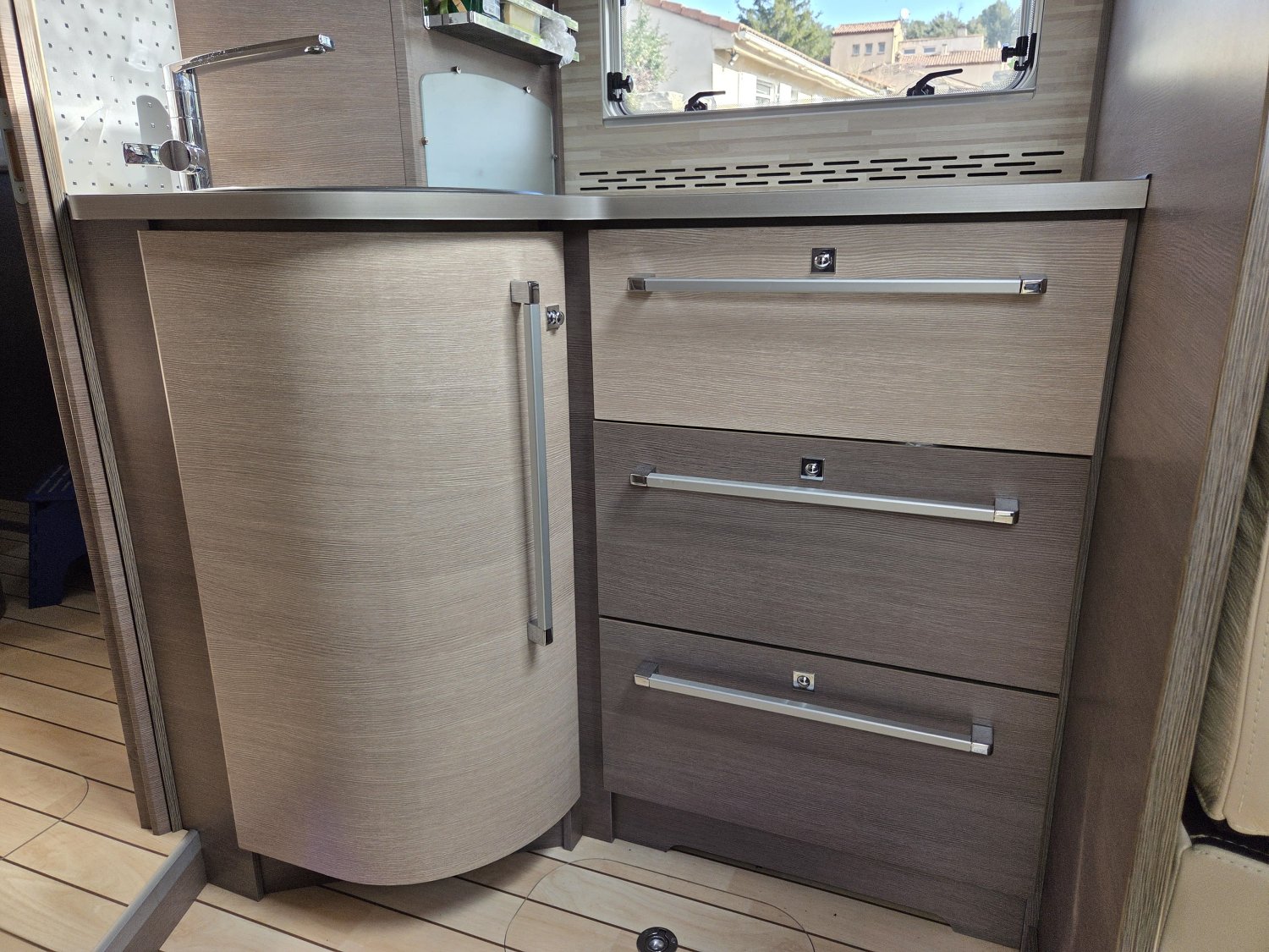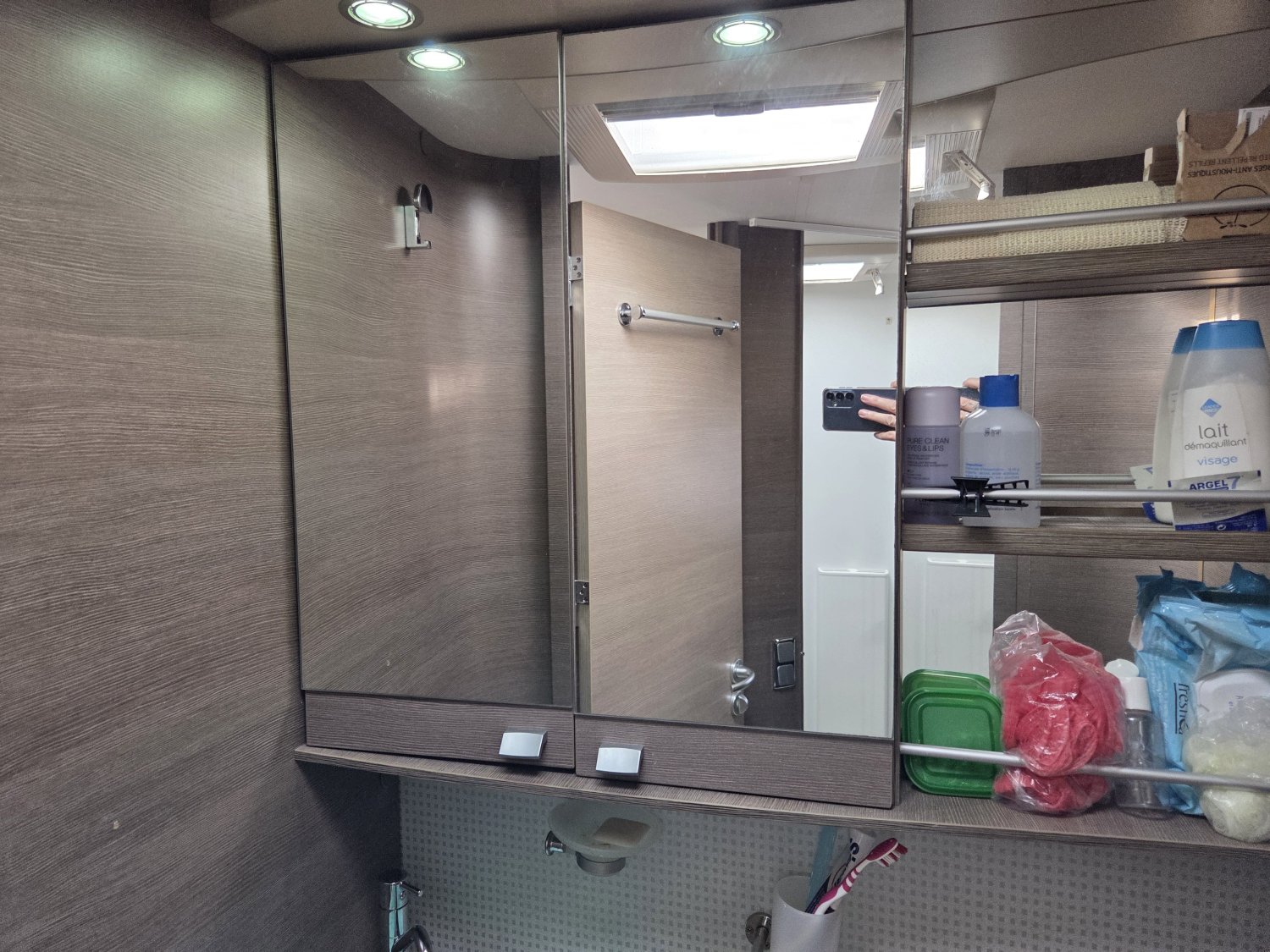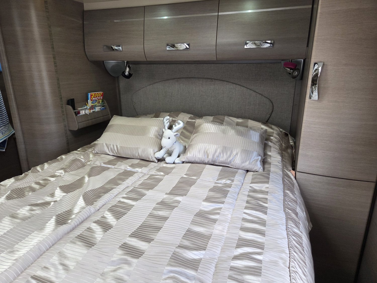 Son agencement spacieux et lumineux propose un grand salon convivial, une cuisine fonctionnelle avec de nombreux rangements et une salle d’eau confortable avec douche indépendante. À l’arrière, vous profitez d’un lit central transversal offrant un couchage confortable et facile d’accès, complété par un lit pavillon deux places à l’avant, permettant d’accueillir jusqu’à quatre personnes.