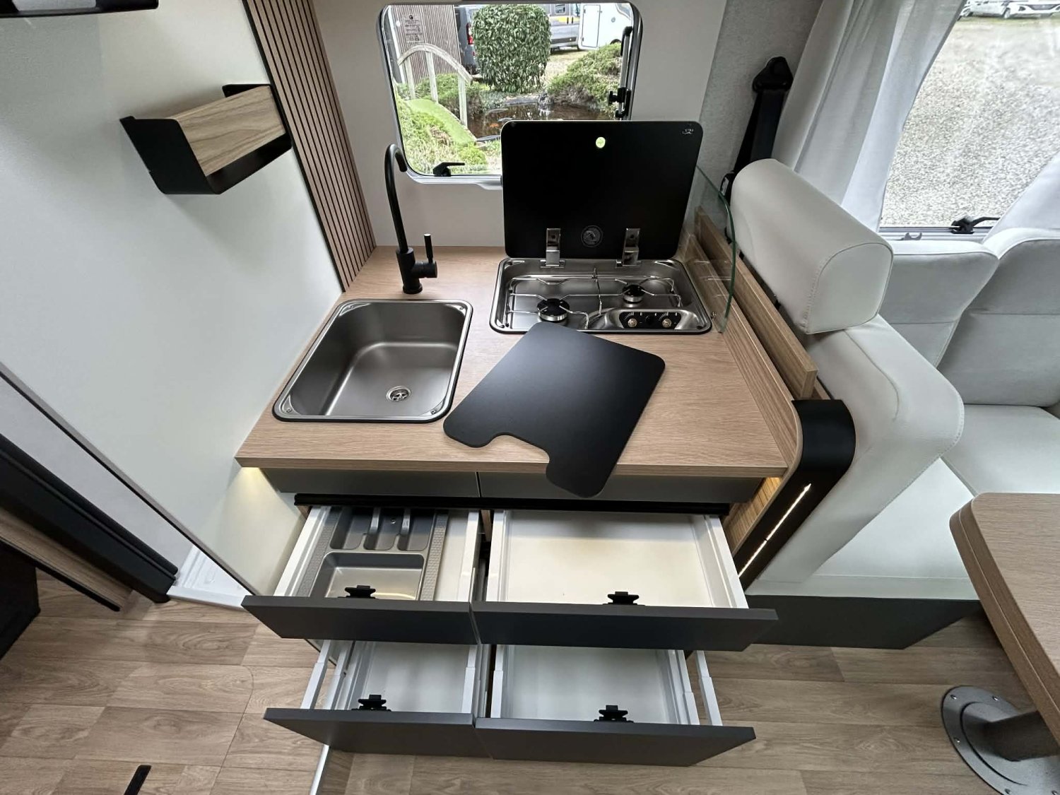 SERIE PRINTEMPS COMPREND :, PACK JANTES: jantes alliage 16, volant en simili, Cabine blanche, Store banne avec LED intégrées, Prise gaz exterieur, Motorisation 2.2L 140 CV BVA, Calandre noire, PACK MEDIA 7, Batterie 95 AGM et 1 panneau solaire 210W, Combi 6 TRUMA 6000 W, Douchette ext eau chaude et froide, Autoradio 7 Pioneer, DAB, caméra de recul, hauts parleurs, Tiroir bas de caisse