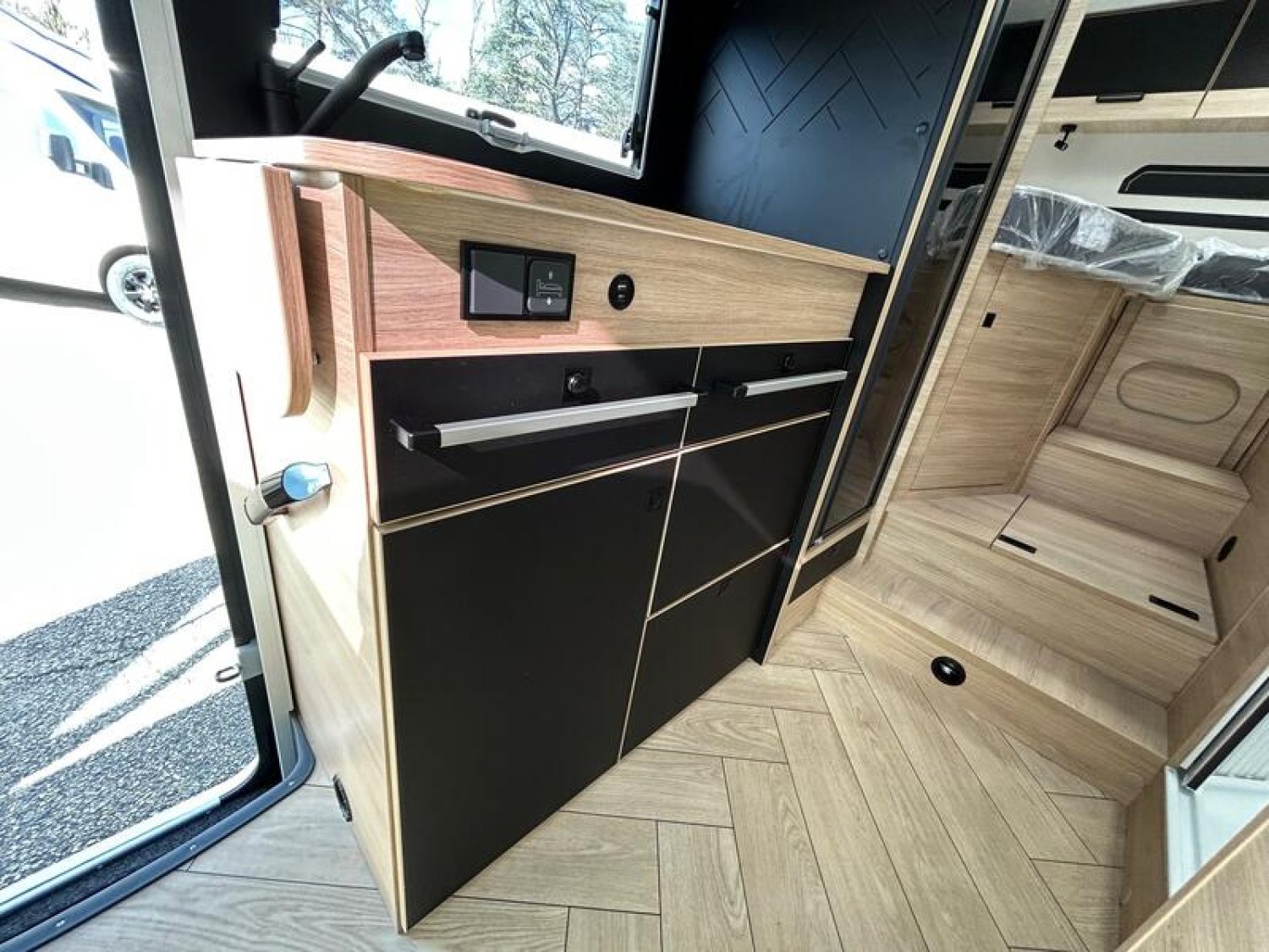 GRAPHITE EDITION Pare-chocs avant peint Technibox Jantes acier avec enjoliveurs 16'' gris Prise de gaz extérieure FORD Pass Feux et essuie-glaces automatiques Feux antibrouillard Porte d’entrée avec fermeture centralisée porteur cellule Matelas couchage principal Premium Pré-équipement TV Chauffage sur carburant utilisable en roulant Eclairage d'auvent Penderie Pré-disposition panneau solaire (MPPT ready) Précâblage caméra de recul Isolation marche d'entrée Châssis blanc Climatisation automatique de cabine Double airbag Frein à main électrique Fix and go + Sièges de cabine pivotants réglables en hauteur avec double accoudoir Housses de sièges cabine assorties à l’ambiance cellule Rétroviseurs électriques dégivrants Régulateur / limiteur de vitesse ESP START & STOP Toit panoramique cabine ouvrant Lanterneau panoramique (ou double lanterneau) Rideaux de séparation cabine/cellule Fenêtres double-vitrage avec combiné stores moustiquaire Voilages Charnières placards amorties Prises USB/USB-C Prise eau extérieure Conception IRP : toit plancher parois polyester : 0 €