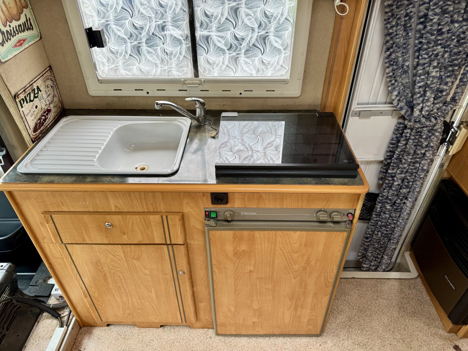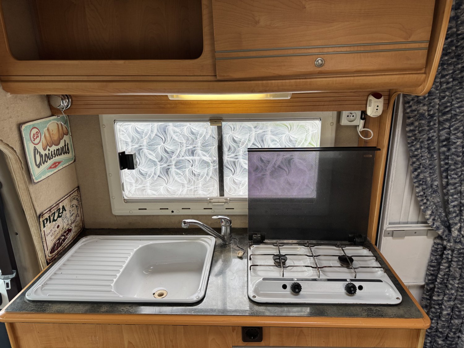 • Cuisine latérale équipée (plaques gaz, évier, réfrigérateur)
