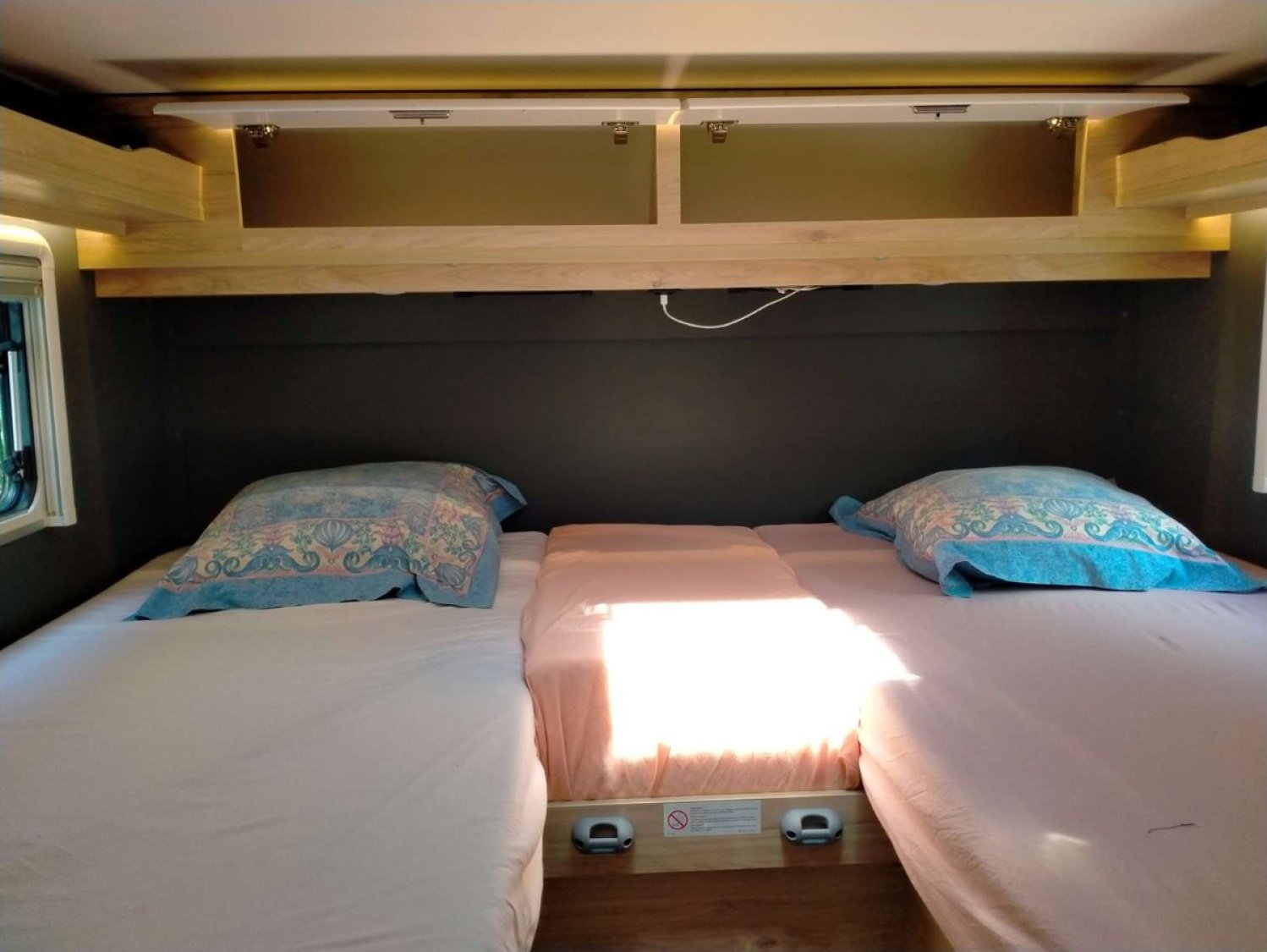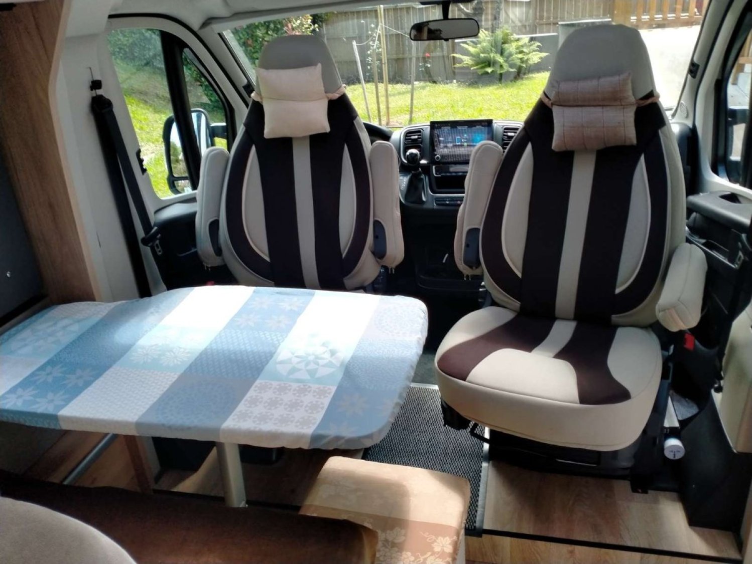 Idéal pour un couple les lits jumeaux se transforment en grand lit 2x1.9 m en sus du lit dinette amovible. Le cabinet de toilette dispose d'une grande douche amovible permettant un gain de place.