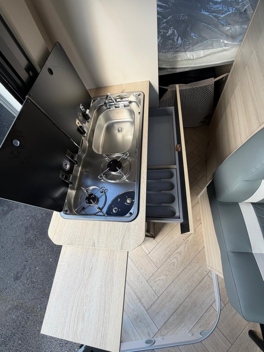 - Pack +: Pack connect : caméra de recul, Système multimédia, commandes au volant, antenne DAB, Pack accessoires : Store extérieur, panneau solaire 200 W, éclairage extérieur, moustiquaire de porte, store cabine, complément couchage dinette, enjoliveurs de baies arrières.
