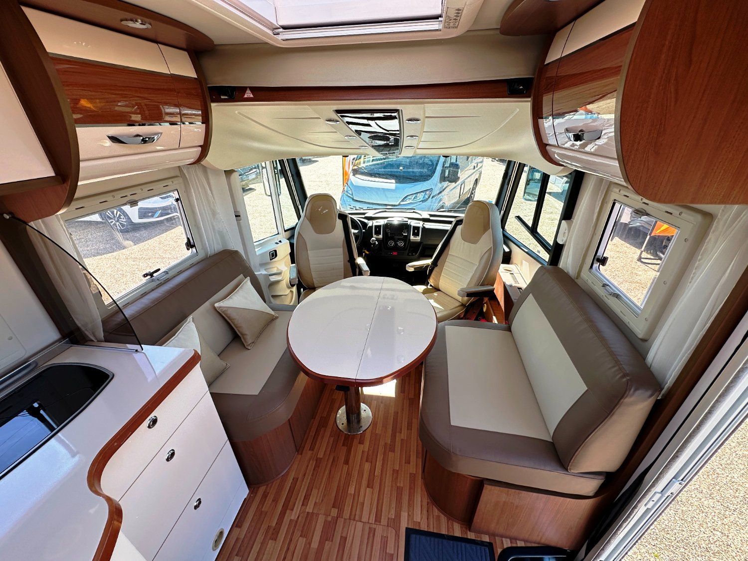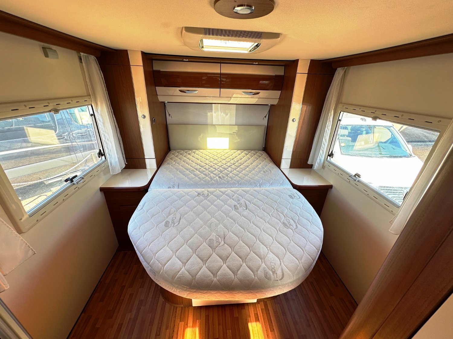 Intégral Autostar, lit central, vaste soute garage (plusieurs vélos adultes), 4 couchages, salle de bain avec grande douche entièrement séparée, fermeture chambre arrière, cuisine spacieuse et toute équipée, vaste salon avant avec sièges pivotant et table centrale + un lit pavillon en cabine pour deux adultes.