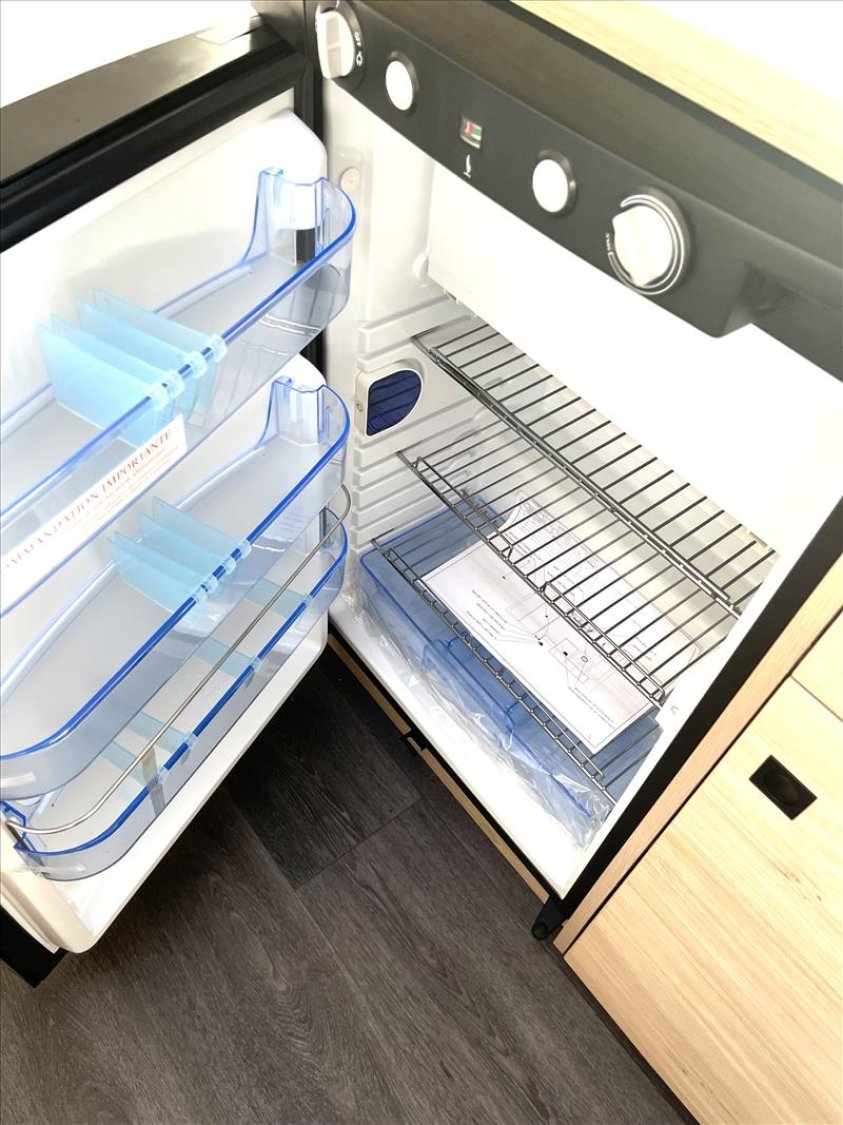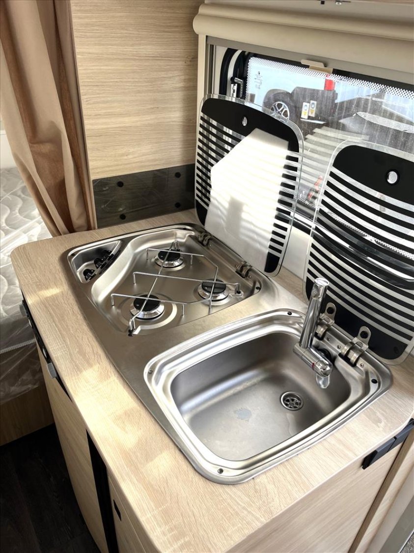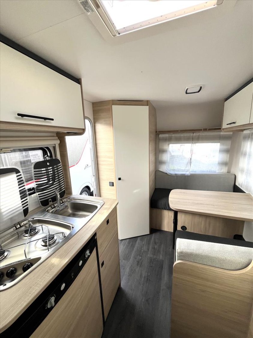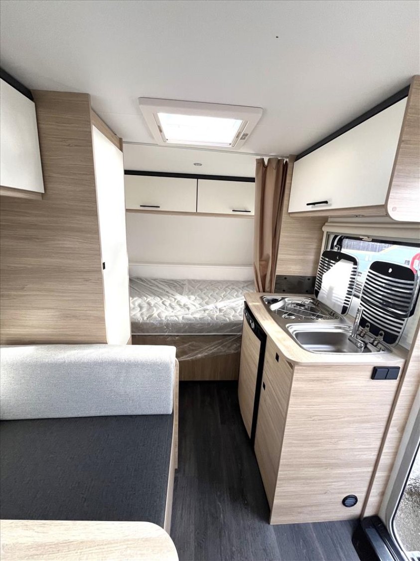 Bac à douche, Store combi occultant + moustiquaire, WC à cassette électrique, Barres porte vélo supérieure + inférieure, Combiné réchaud 3 feux, Vérins rallongés à l'avant, Transformateur 230/12V + disjoncteur, Eclairage intérieur LED, Eclaireur d'auvent, Enjoliveurs de roues, Réfrigérateur trimixte 85L