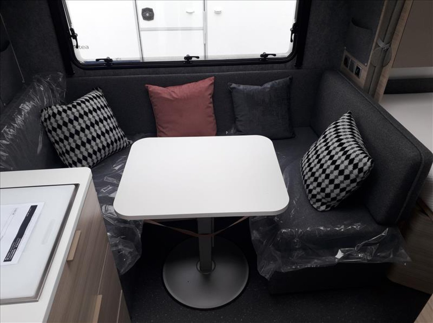 4 coussins décoratifs, Boiler 5L truma terme, Chauffage à gaz Truma S3004, Jantes an acier, Lanterneau mini heki 400*400, Table relevable avec pied télescopique, Prise de courant 230V, Réfrigérateur 167L, Vidange centrale d'eaux usées, Vérins stabilisateurs standard, Réchaud 3 feux avec allumage électrique, Moustiquaires et stores obscurants sauf toilette, Porte d'entrée 2 pièce sans fenêtre