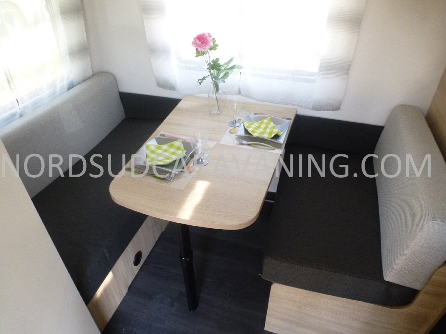 Cette magnifique caravane rigide CARAVELAIR ALBA 390 compacte, légère, facile à manœuvrer, réussit le pari d'allier en 4 mètres, un lit fixe en 140 cm de large, un grand espace dinette 4 places transformable en deuxième couchage et offre donc 4 couchages.