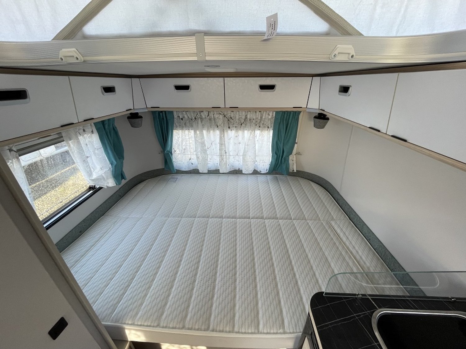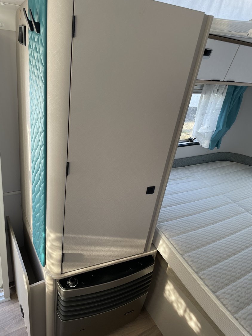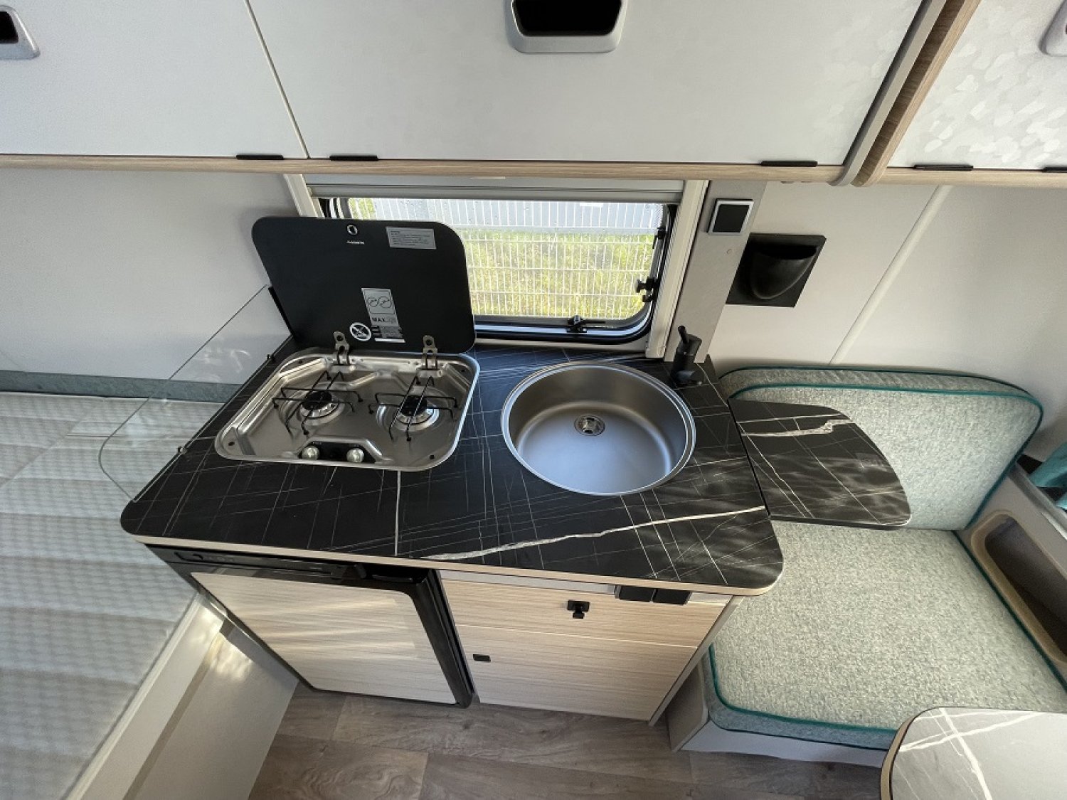 Moustiquaire sur toute la hauteur de la porte à usage facile grâce au guidage latéralStores plissés confortPrises supplémentaires (2 x 230 V et 1 x USB double)Poubelle intégrée à la porte celluleCouvercle d’évier avec planche à découper pour évier en acier inoxydableMiroir grossissant avec fixation magnétiquePack design